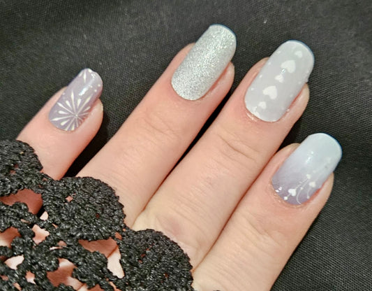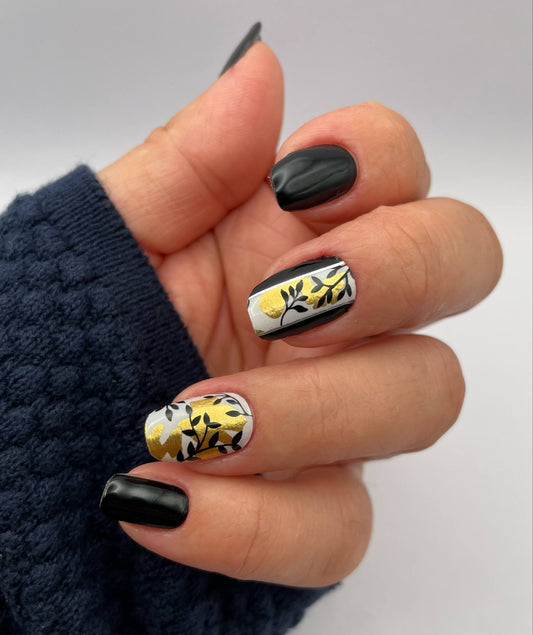 Nagelfolien ohne UV (Nail Polish Wraps) gibt es bei Blush&Cherry als 16er, 18er, 20er und 22er Folienset-Größen. Idealerweise werden sie mit einem geeigneten UV-Top Coat versiegelt und halten so bis zu 14 Tage.