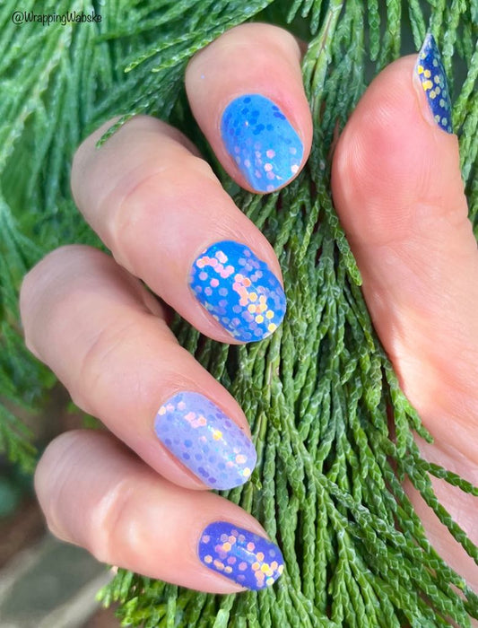 Shine-Edition (Folien mit integriertem Top Coat): Die Zusammensetzung der Inhaltsstoffe ist eine andere als die der Classic Nail Polish Wraps, da bei ihnen der Top Coat bereits integriert ist. Sie glänzen und glitzern durch diese in der Regel stärker, haben aber auch einen stärkeren Eigengeruch, der aber nach dem Öffnen der Packung recht schnell verfliegt. Sie benötigen keinen zusätzlichen Top Coat. Diese Foliensorte gibt es bei uns grundsätzlich nur als 16er Sets.