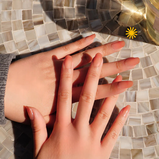 The strips cure instantly under light. However, for optimal results and longevity, expose them to sunlight for a few minutes (10-20 minutes depending on the sun's intensity). We at Blush&Cherry recommend using a UV lamp for even and reliable curing (20-60 seconds depending on the UV lamp's strength; if the foil still appears soft, increase the time accordingly). After curing, shape the nail strips into the desired shape with a nail file. Curing for too long can lead to chipping (the foil will peel off)!