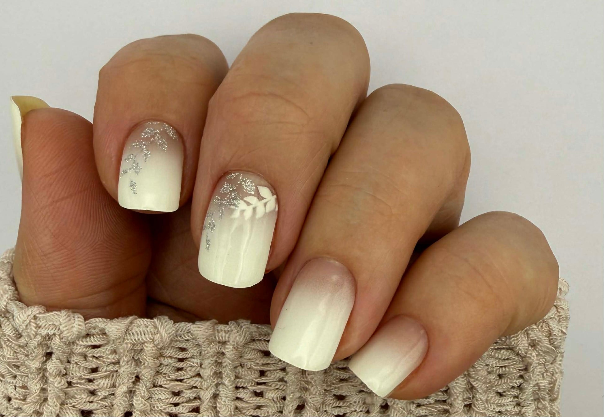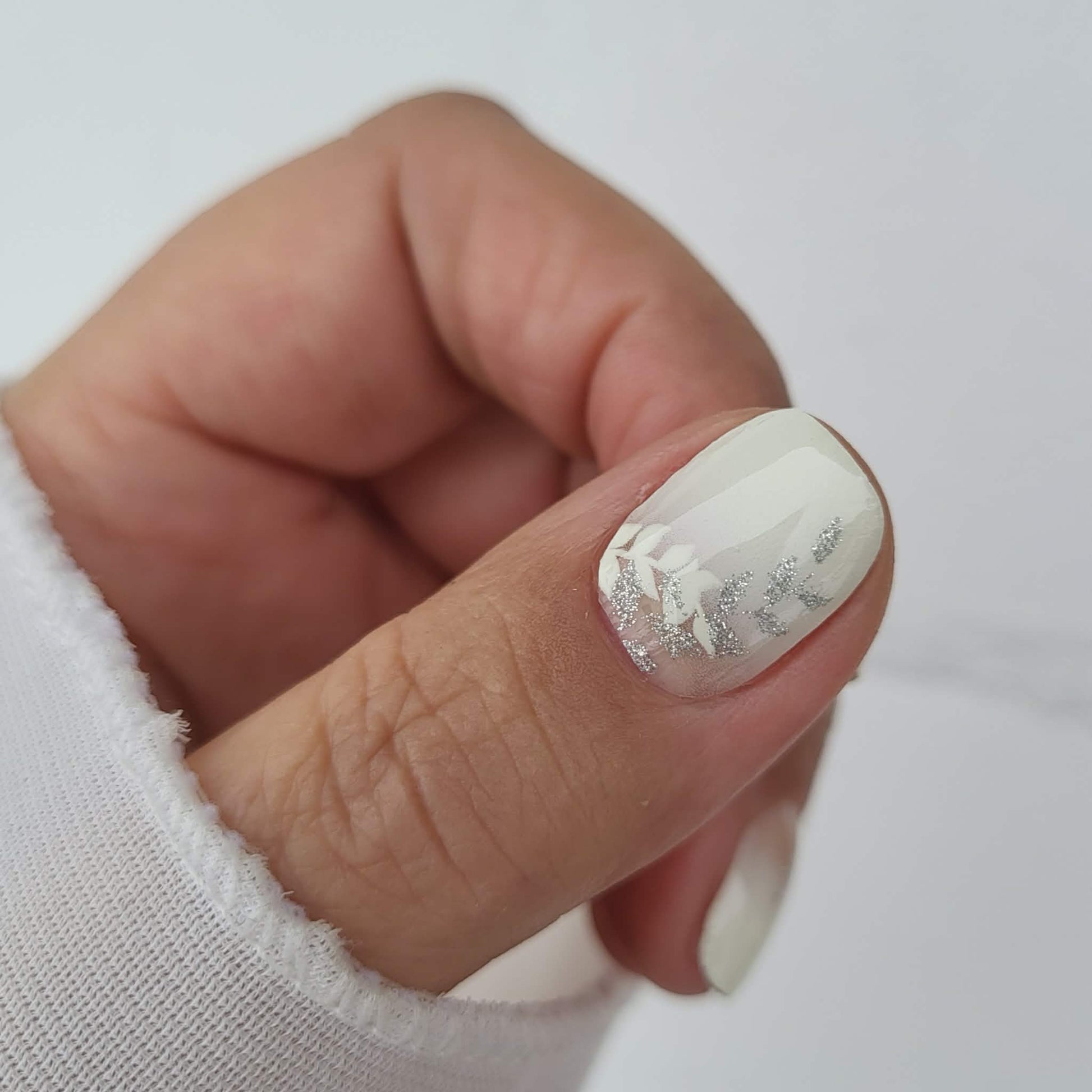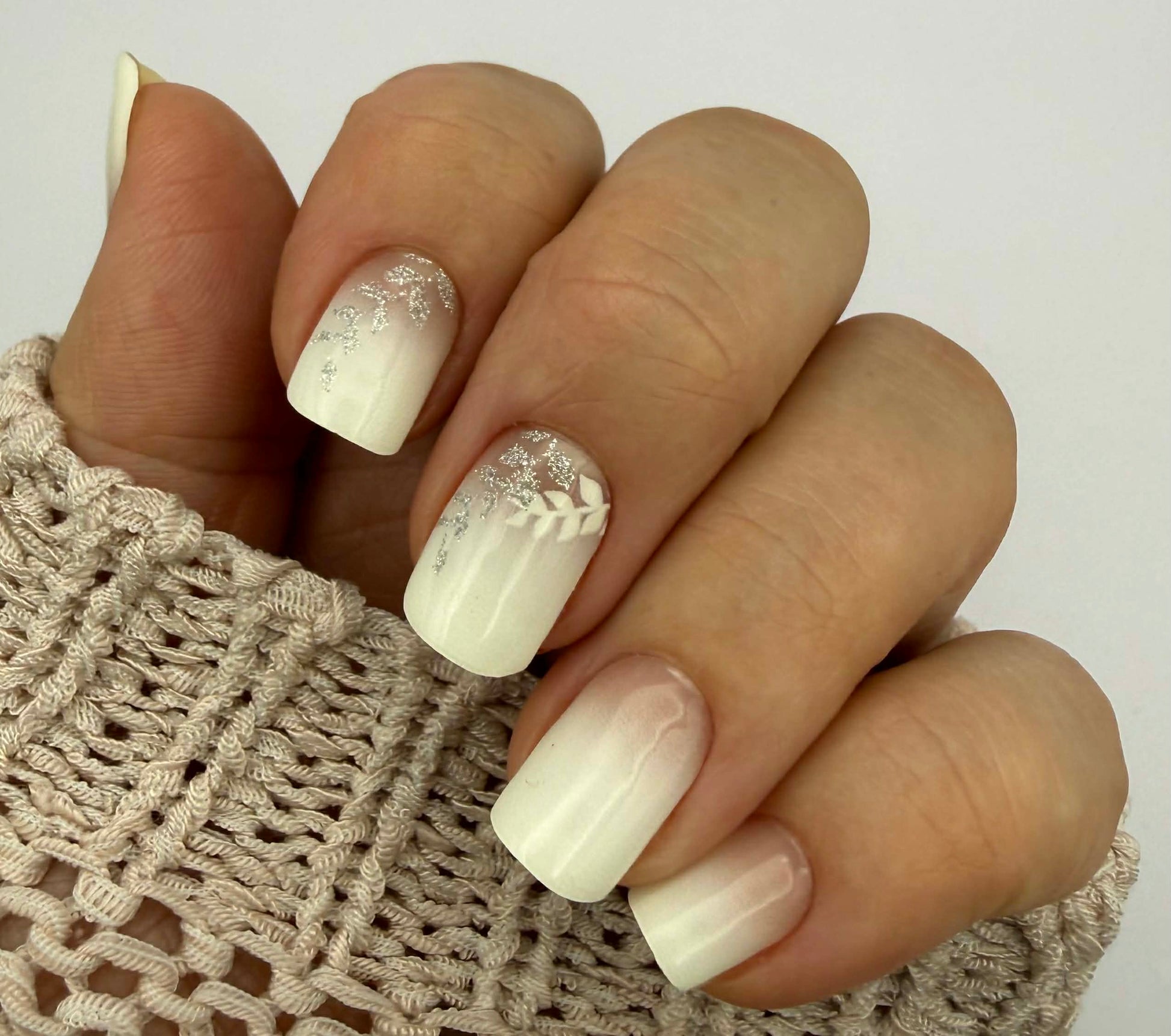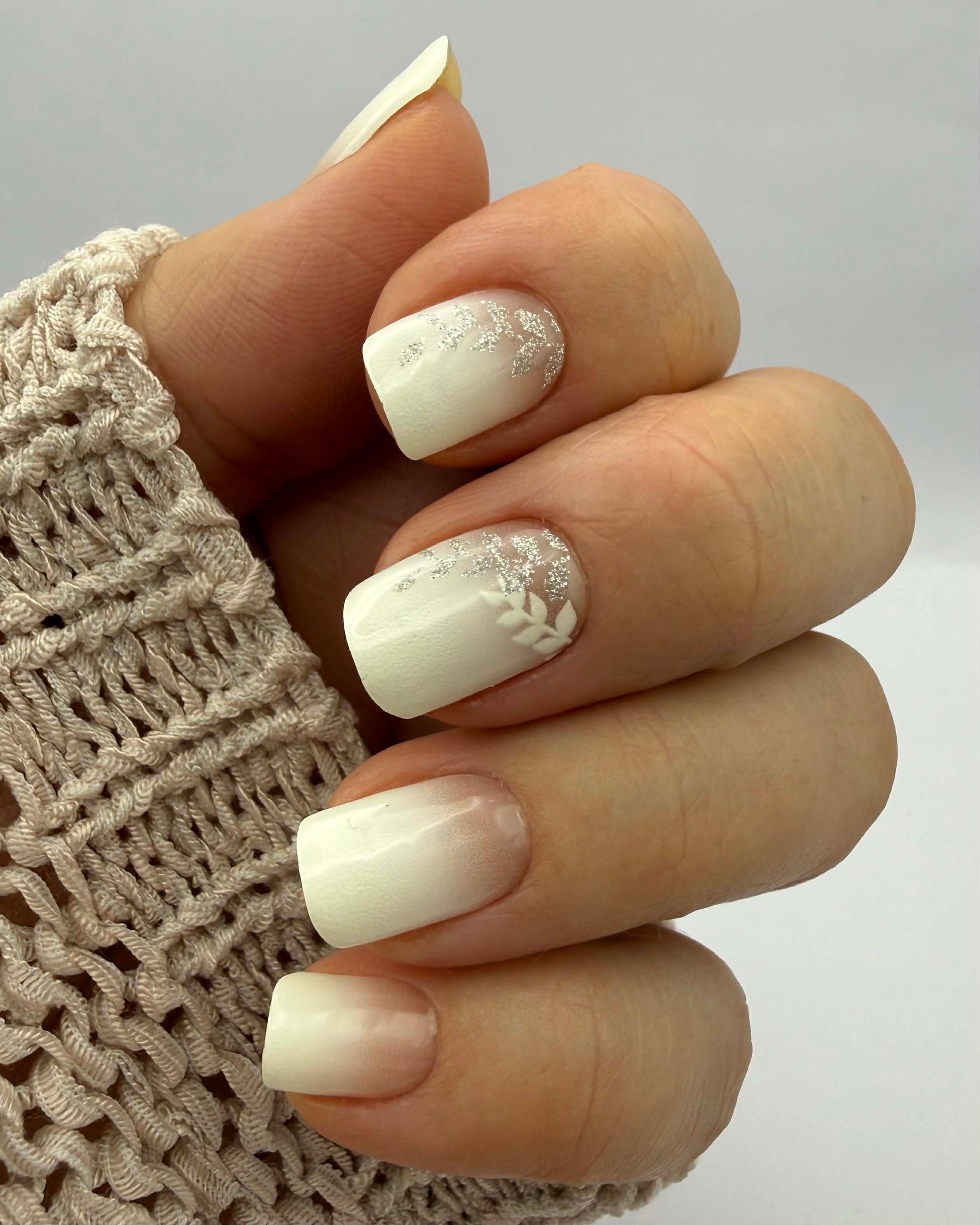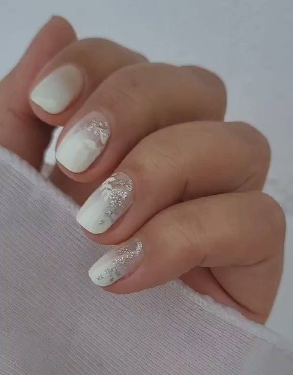 Weißes Komplettdesign mit zarter Semitransparenz am Nagelmond