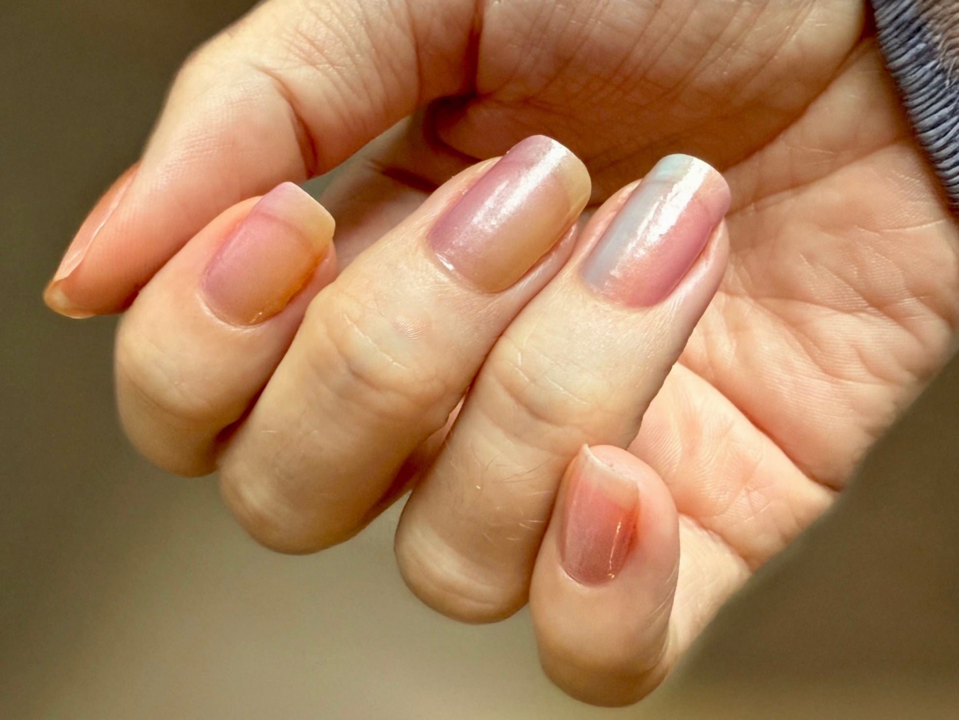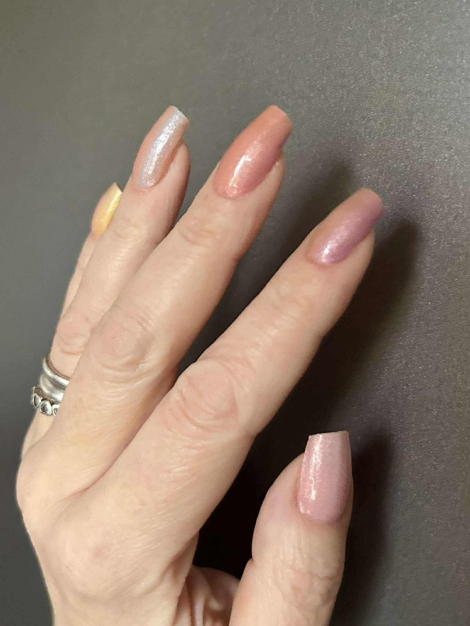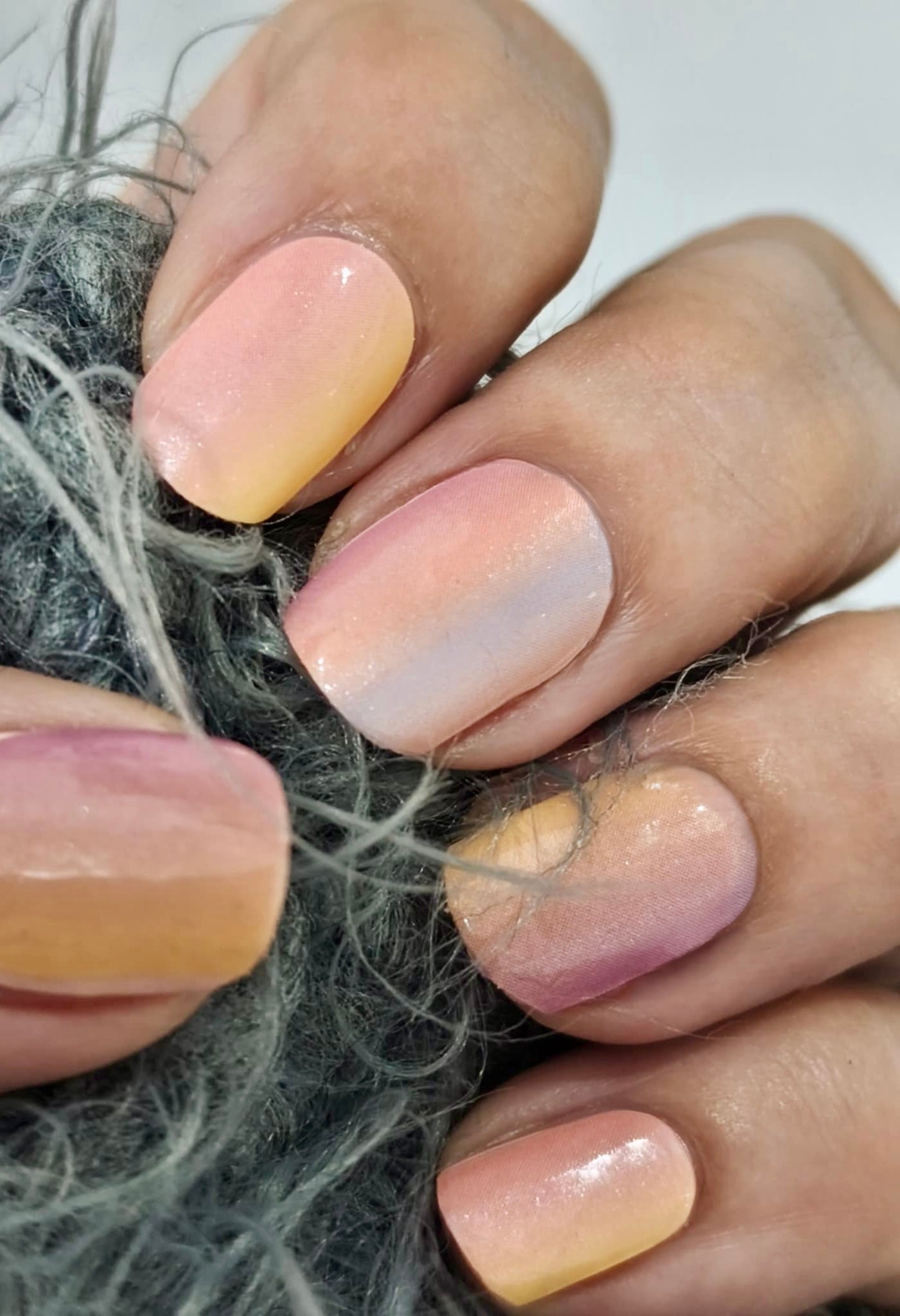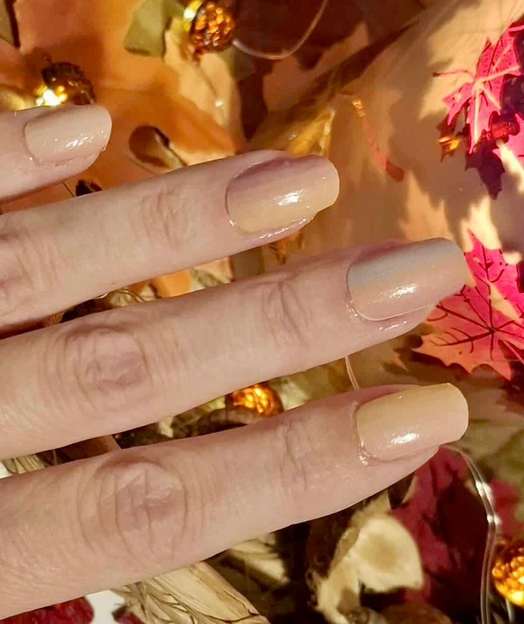 Stark semitransparente Folie, die einen Hauch von Farbe auf die Nägel zaubert. Bestens geeignet als Overlay auf hellen Folien, um ihnen ein schimmerndes, pastelliges Regenbogen-Ombre zu verleihen.