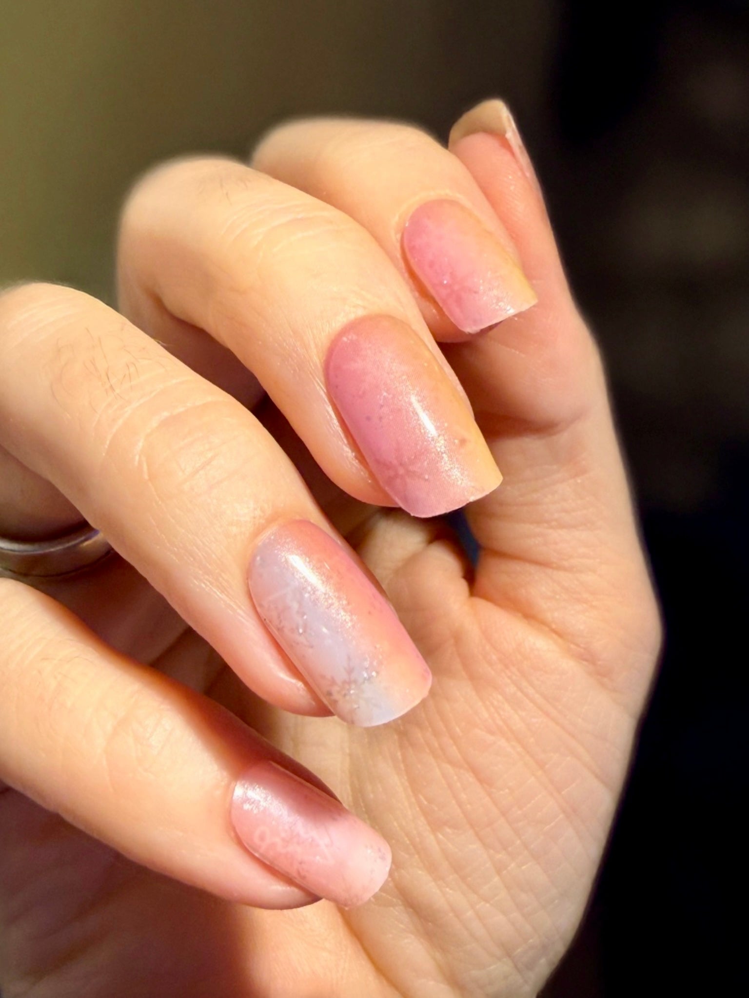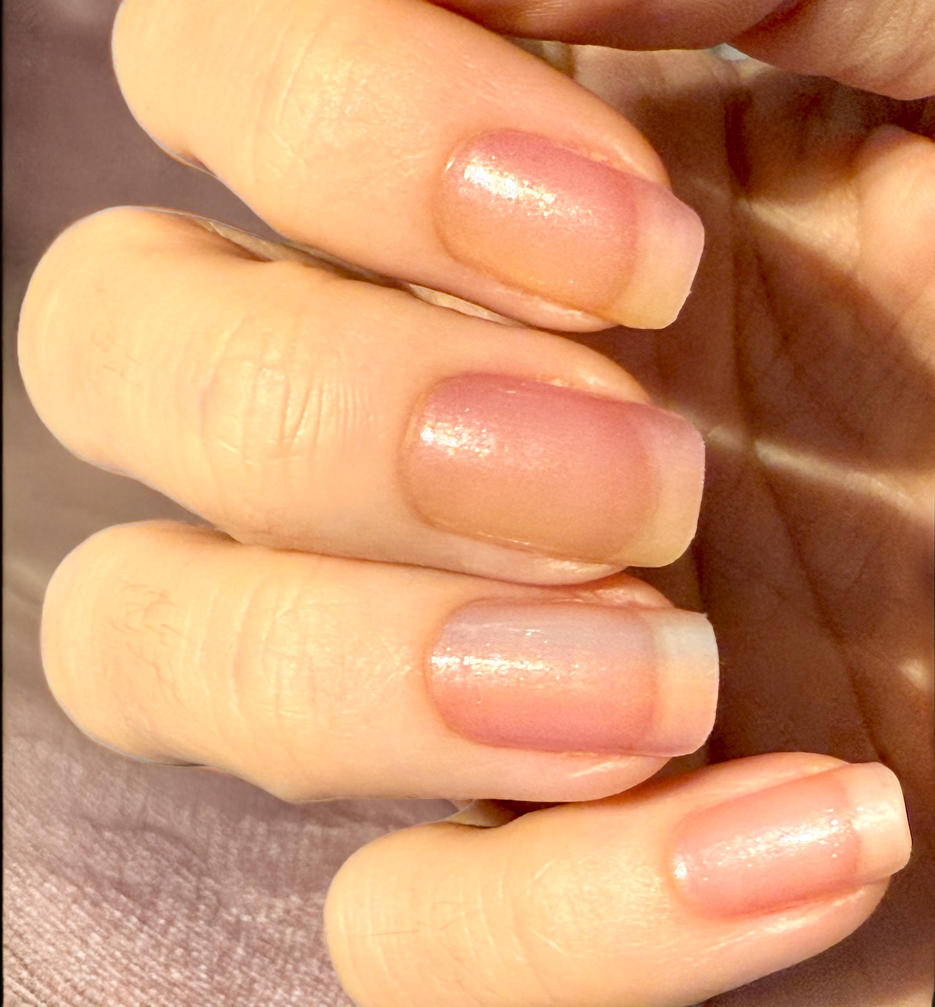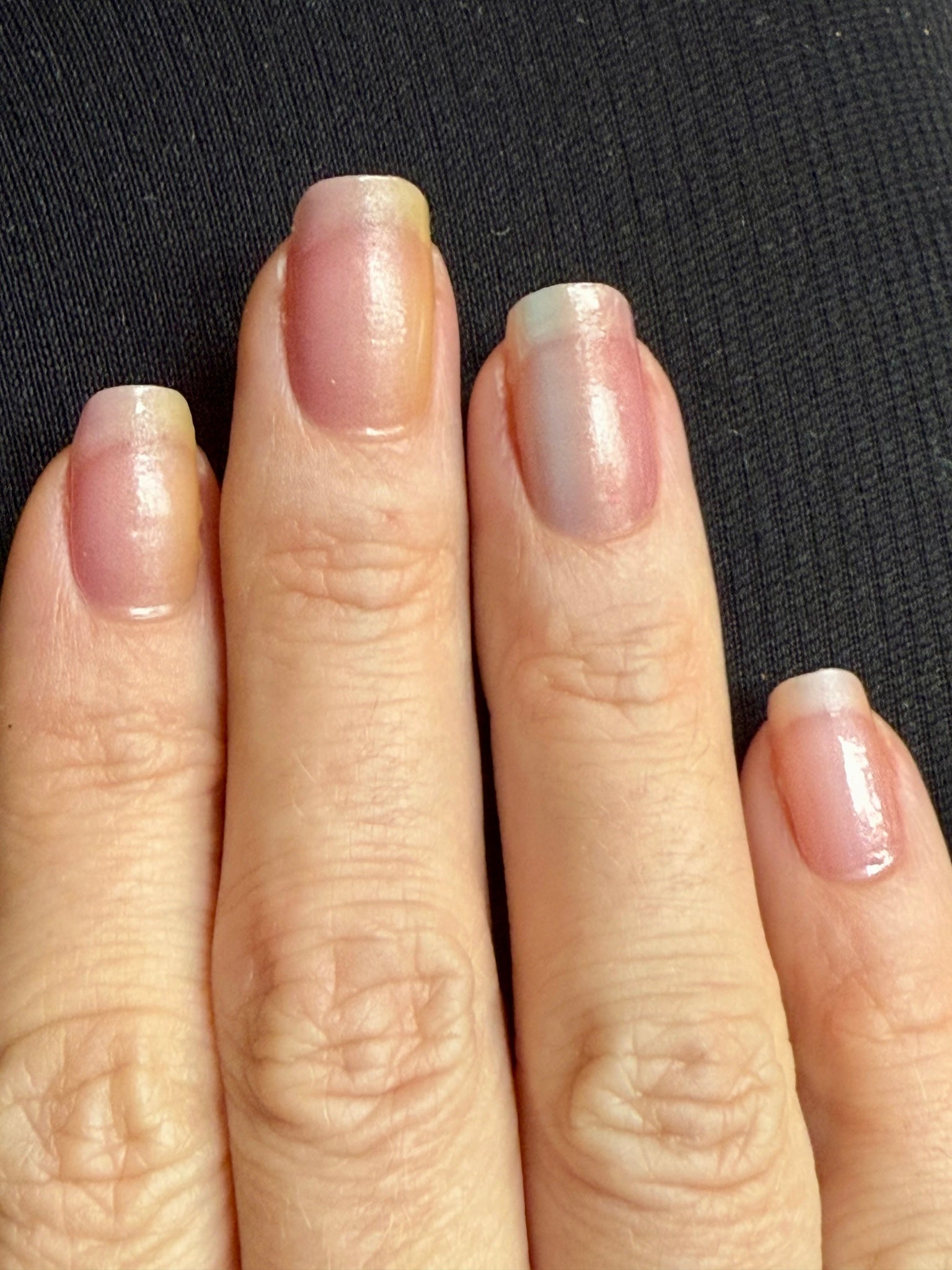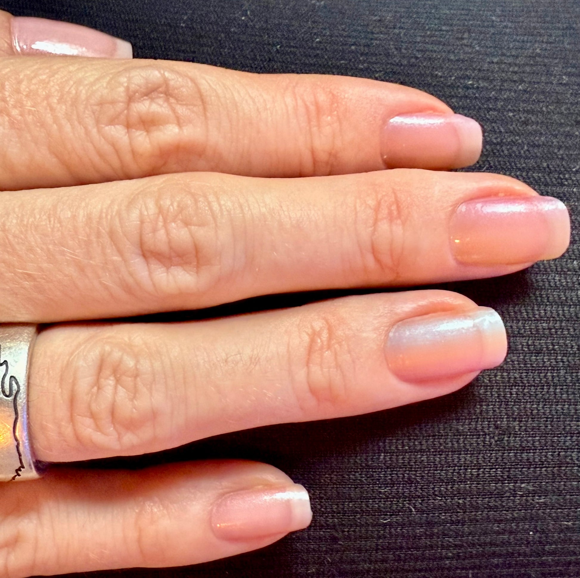 Stark semitransparente Folie, die einen Hauch von Farbe auf die Nägel zaubert. Bestens geeignet als Overlay auf hellen Folien, um ihnen ein schimmerndes, pastelliges Regenbogen-Ombre zu verleihen.