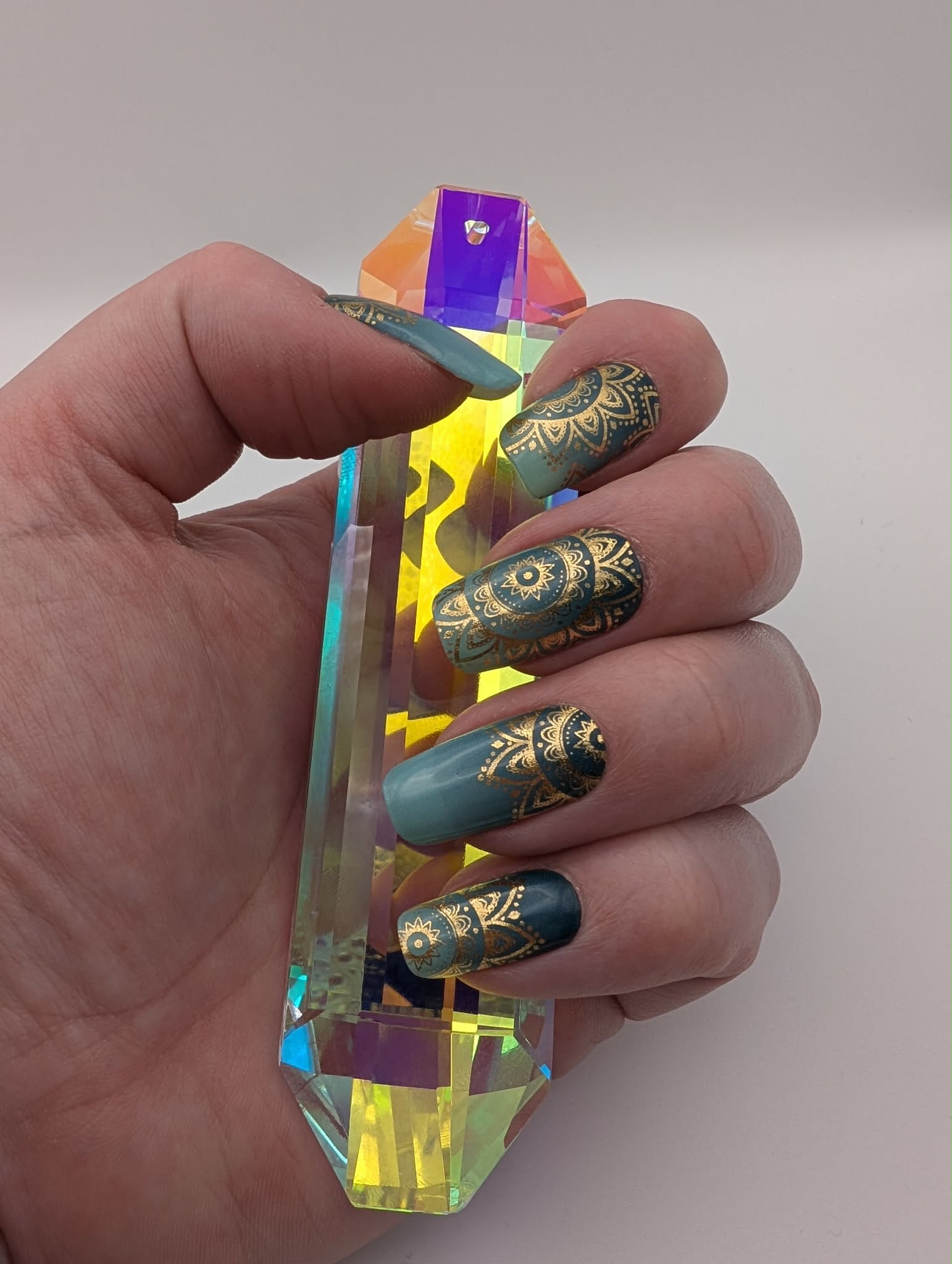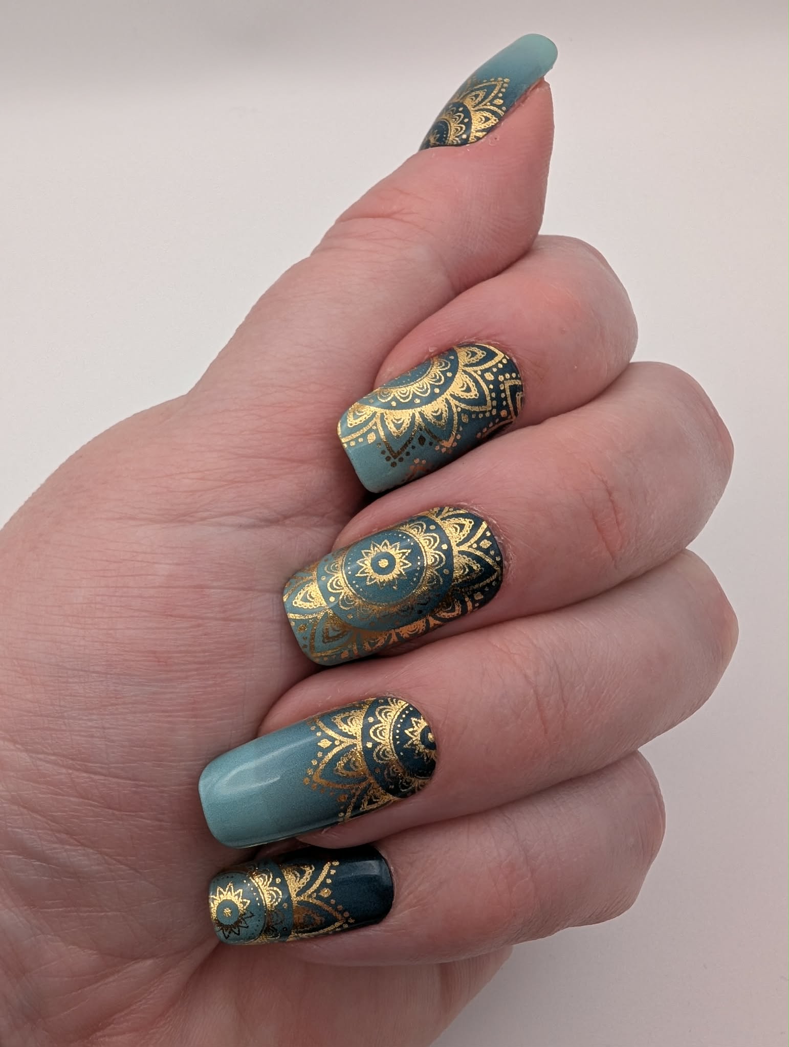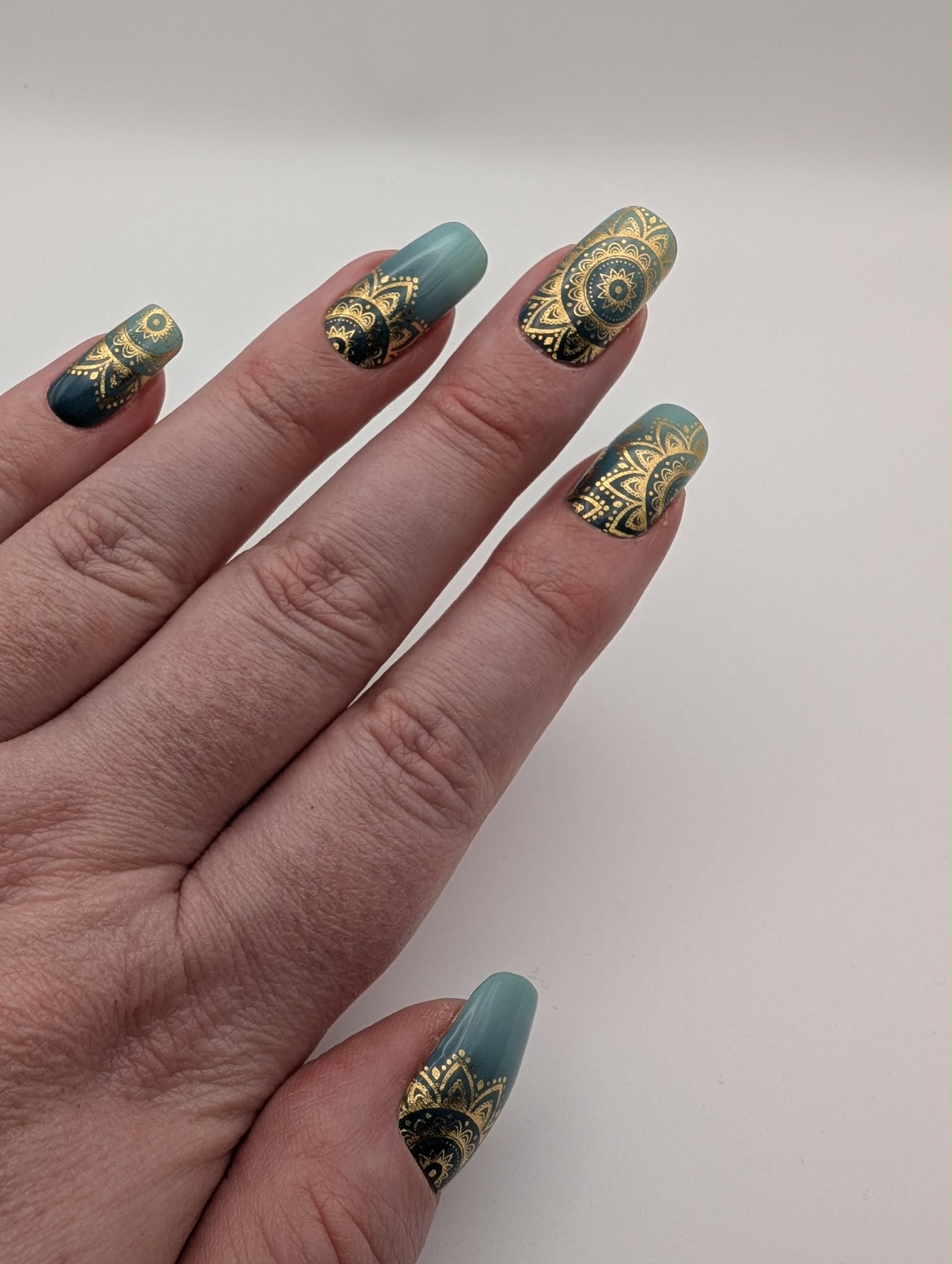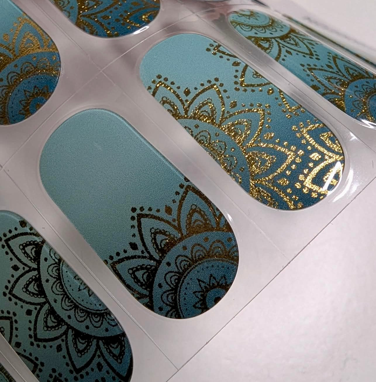 Türkise Folie mit goldenen Ornamenten