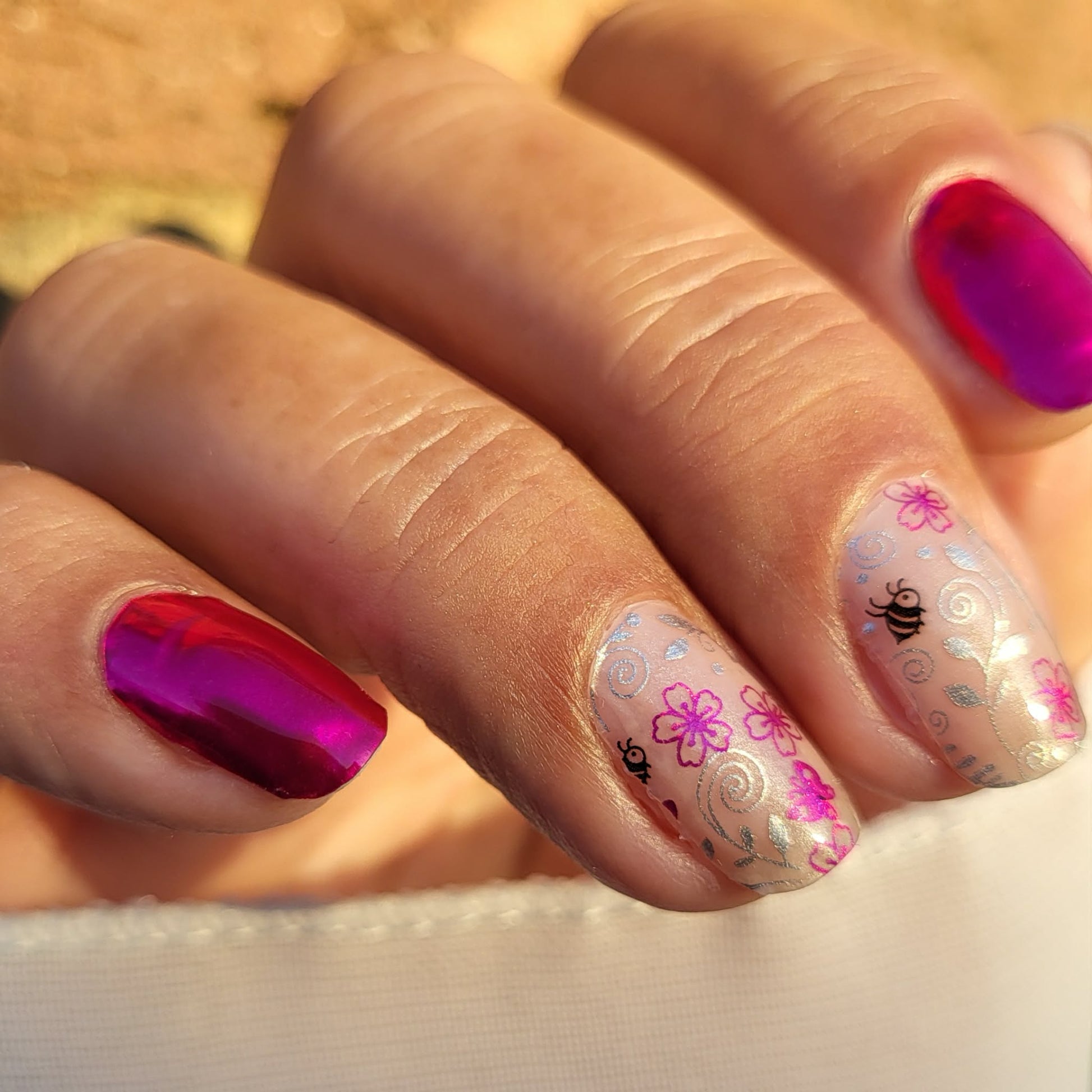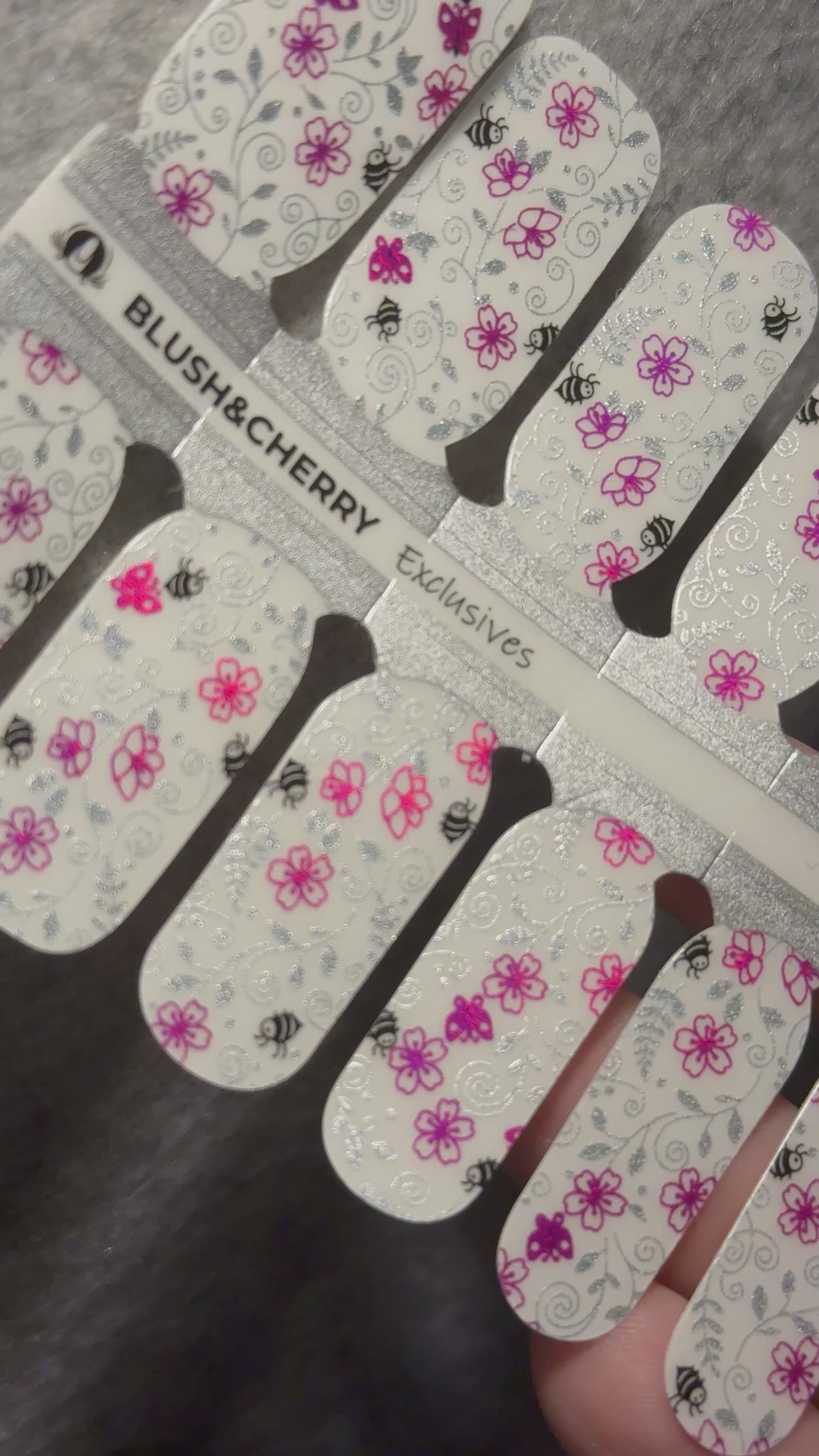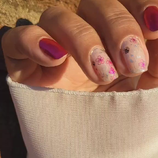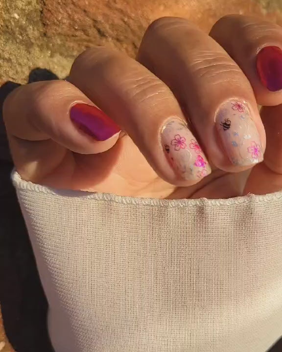 Overlays sind teiltransparent und kommen am besten zur Geltung, wenn sie über eine farbige Folie oder farbigen Nagellack geklebt werden.