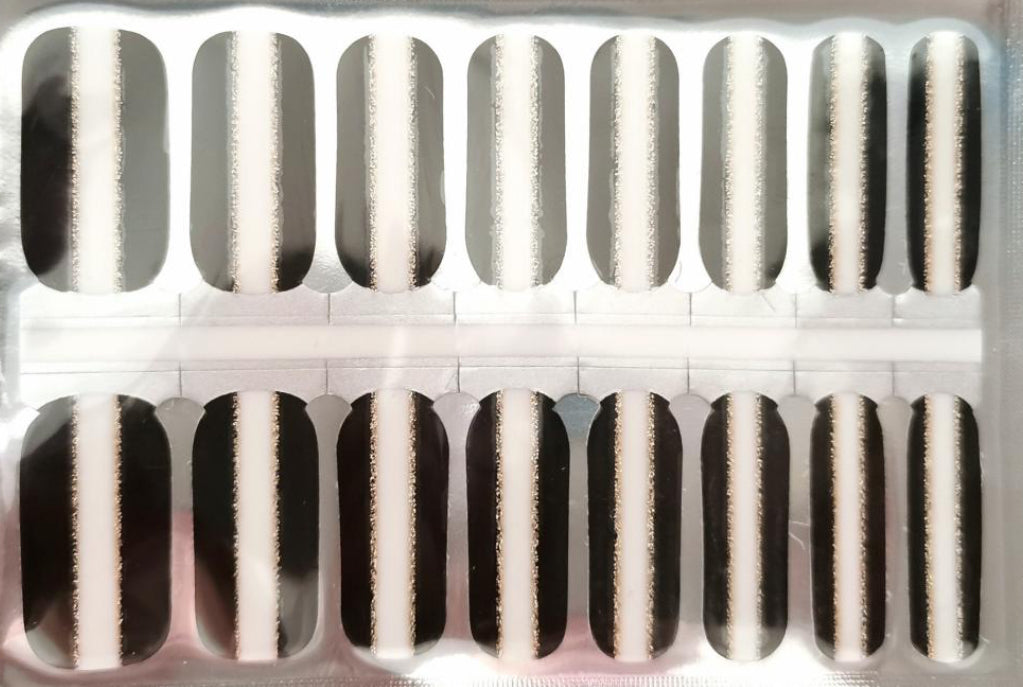 Schwarz-weiße Folie mit goldenen Glitzerstreifen