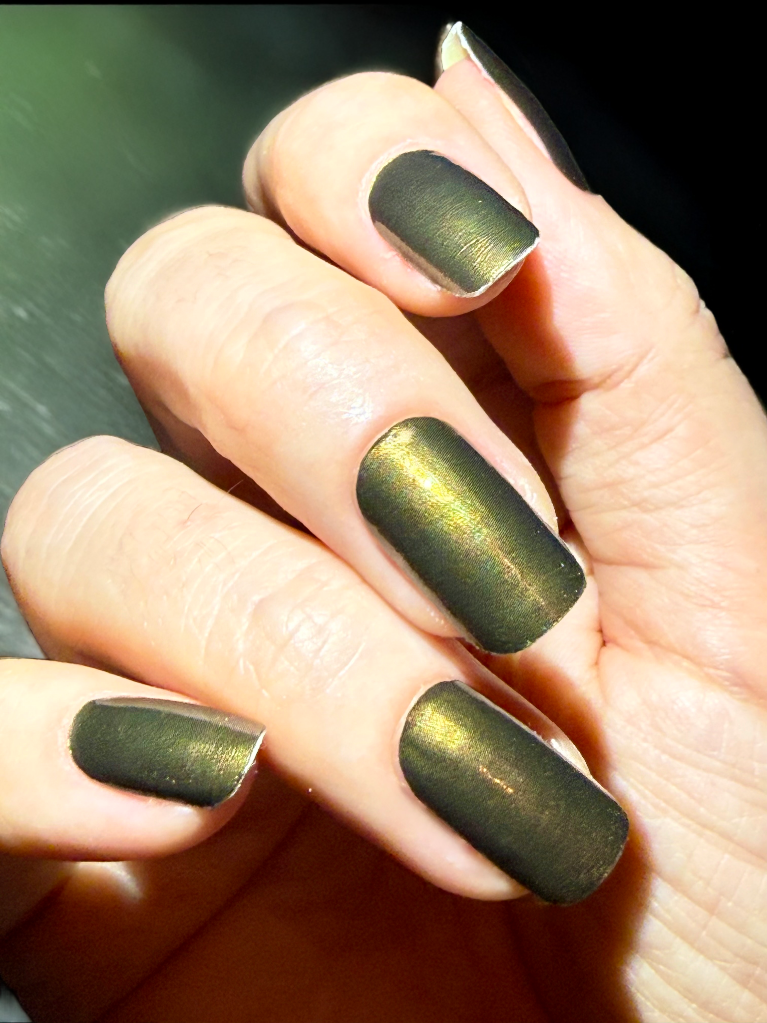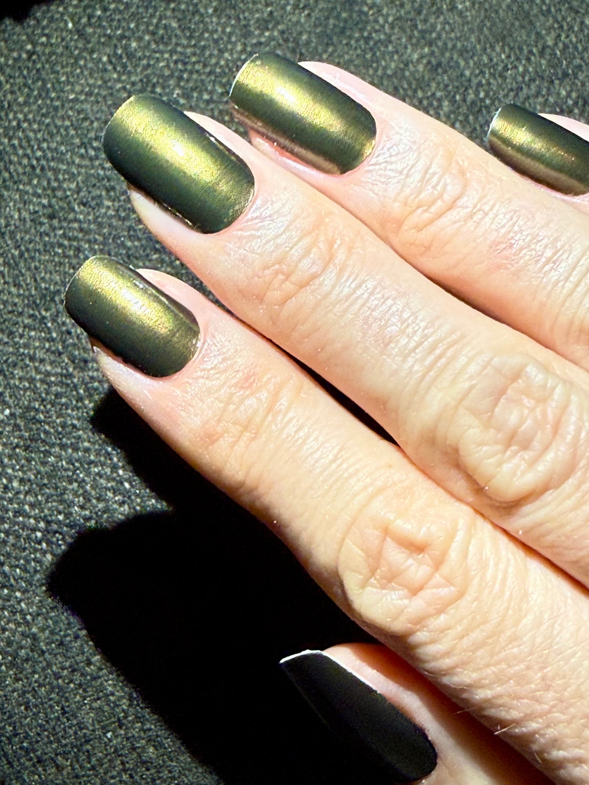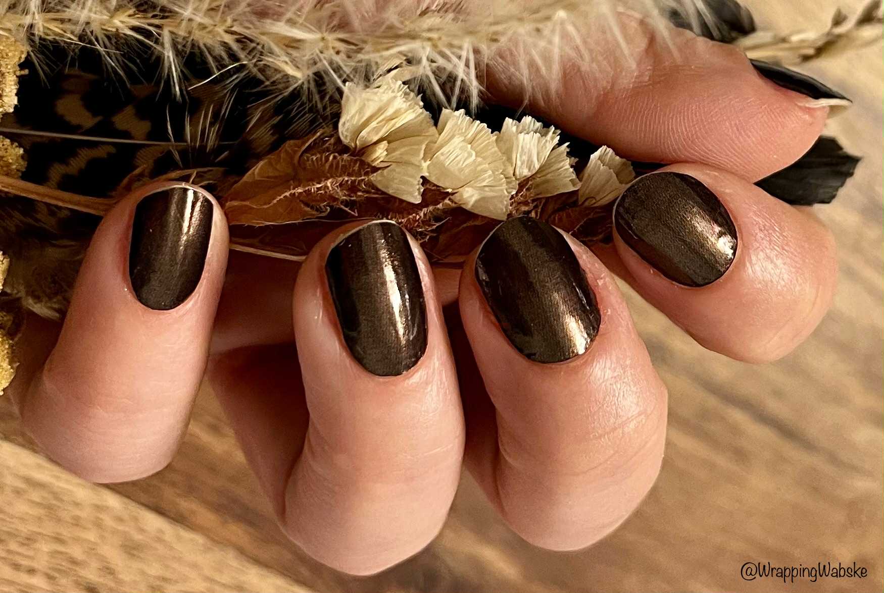 Je nach Lichteinfall braune oder grüngoldfarbene Chrome Folie