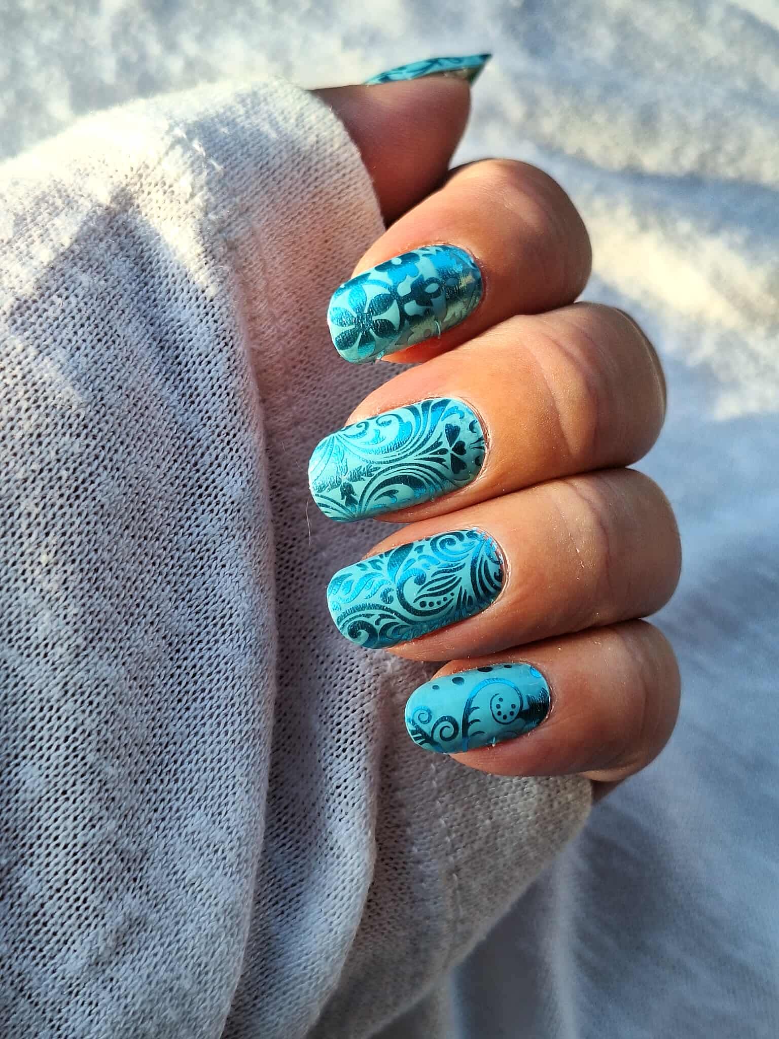 Overlays sind teiltransparent und kommen am besten zur Geltung, wenn sie über eine farbige Folie oder farbigen Nagellack geklebt werden. In den Tragebildern teils pur, teils auf “Uni Teal” geklebt.