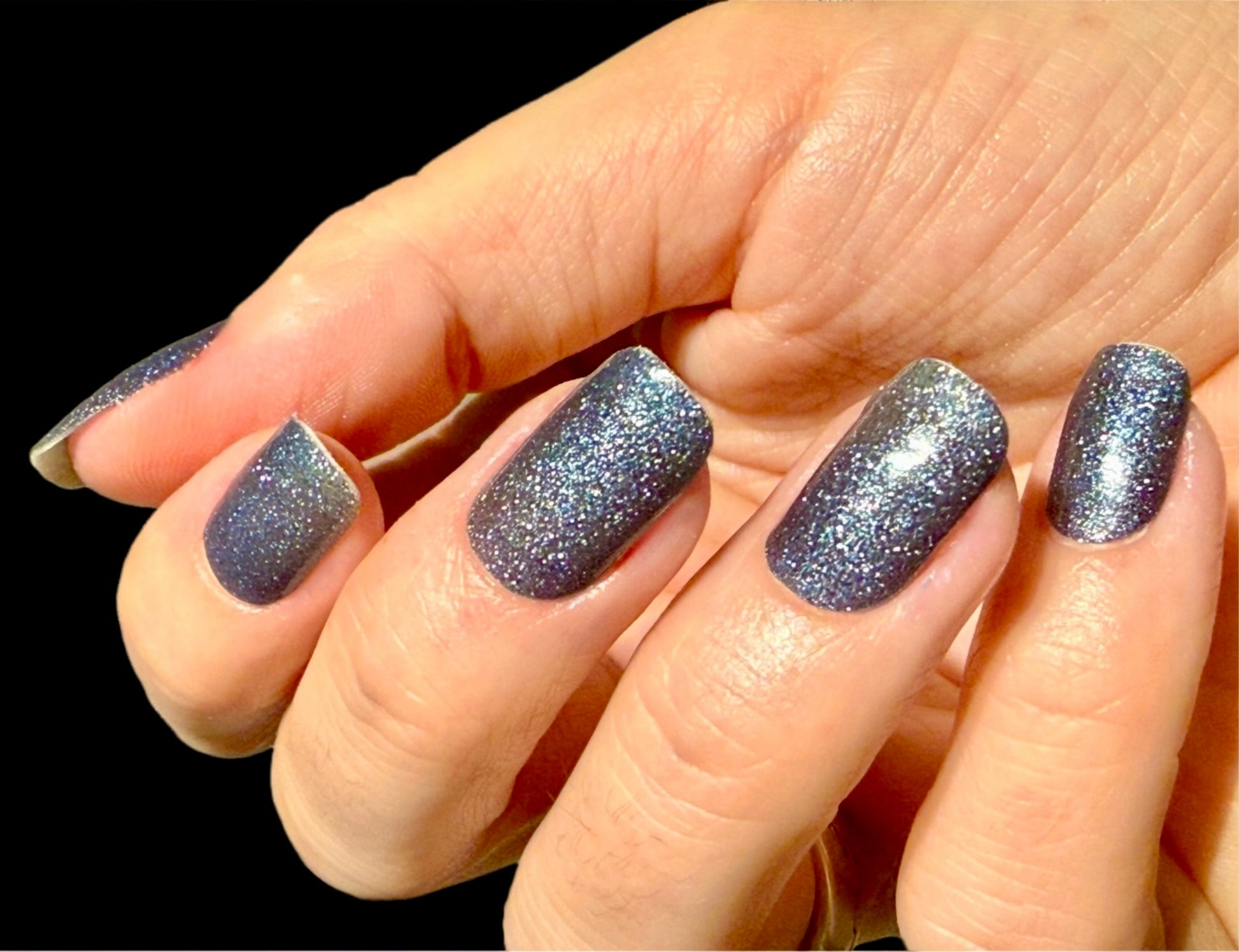 Denim - stark glitzernde, jeansfarbene Folie, minimal semitransparent
