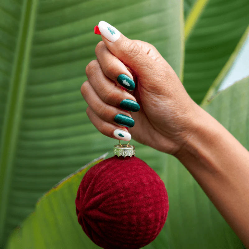 Diese Mischung aus tiefen Waldgrüntönen und sanften neutralen Akzenten bringt winterliche Kiefernstimmung direkt auf deine Hände. Gemütlich und natürlich, mit einem Hauch von Festtagsstimmung.