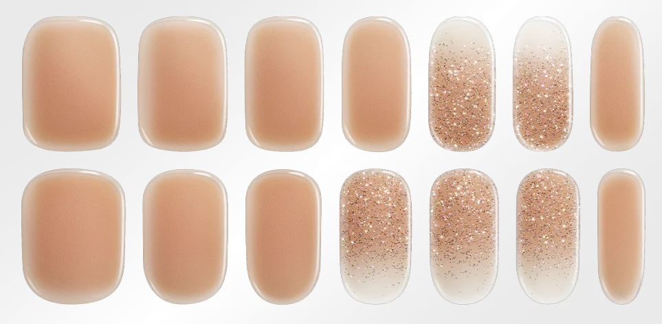 Eine Mischung aus Nudetönen und dezentem Glitzer, die an den sanften Schein von Weihnachtslichtern erinnert. Perfekt für einen gemütlichen Abend am Kamin.