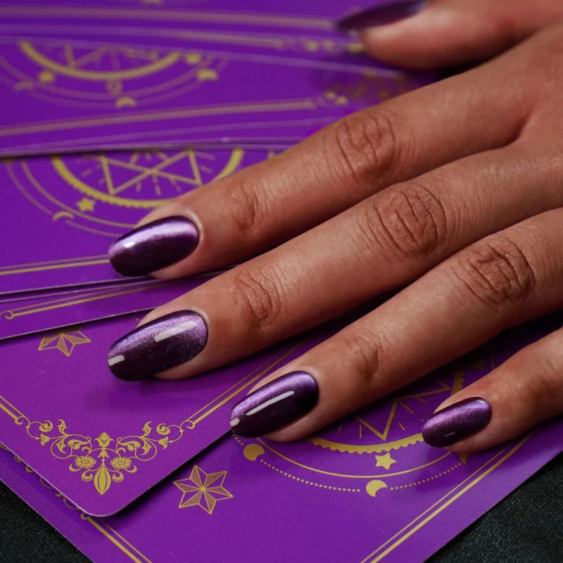 Galaktisches Cat-Eye Violett mit einem magnetischen Farbspiel - faszinierend und strahlend bei jedem Lichtwechsel.