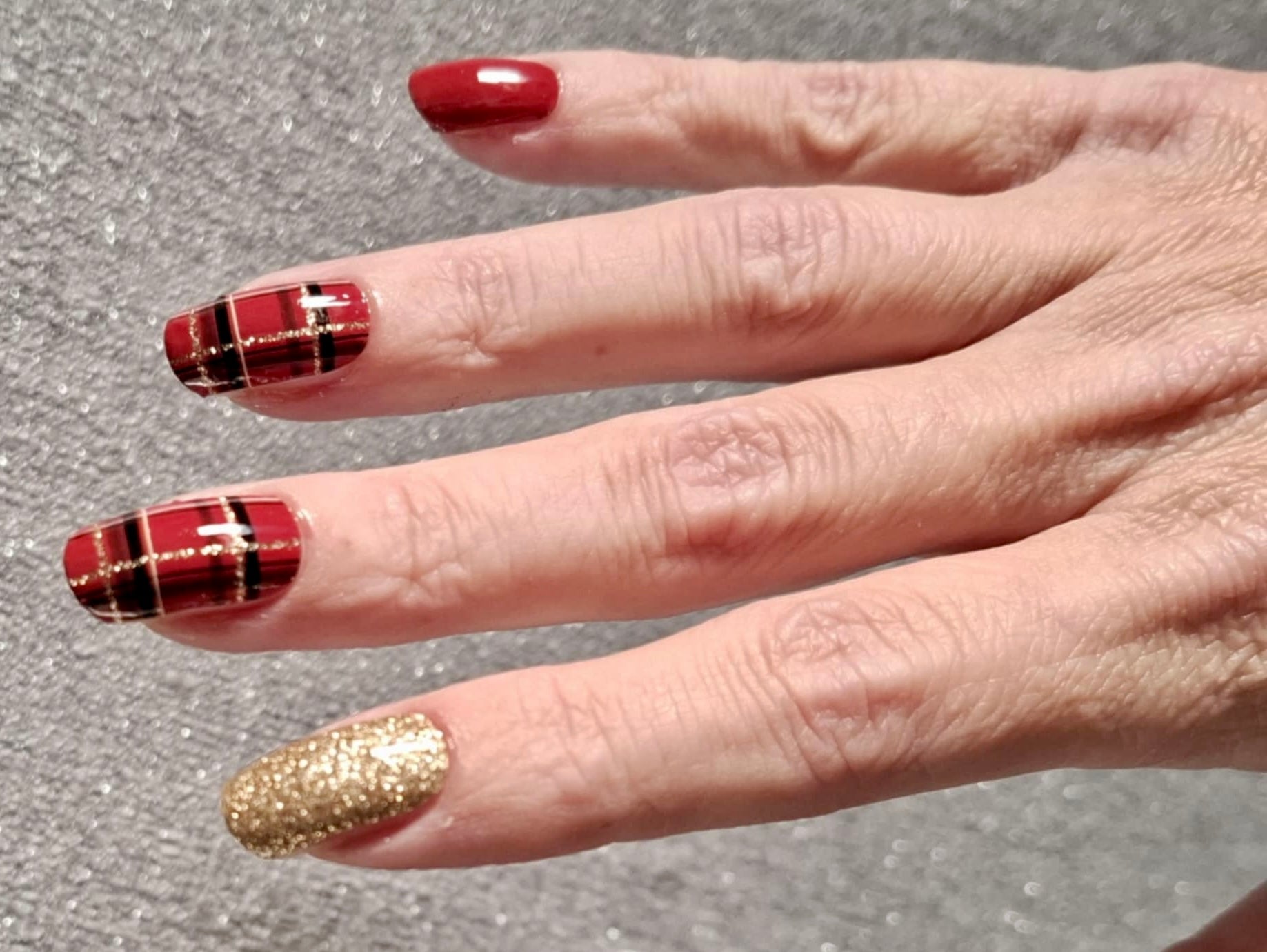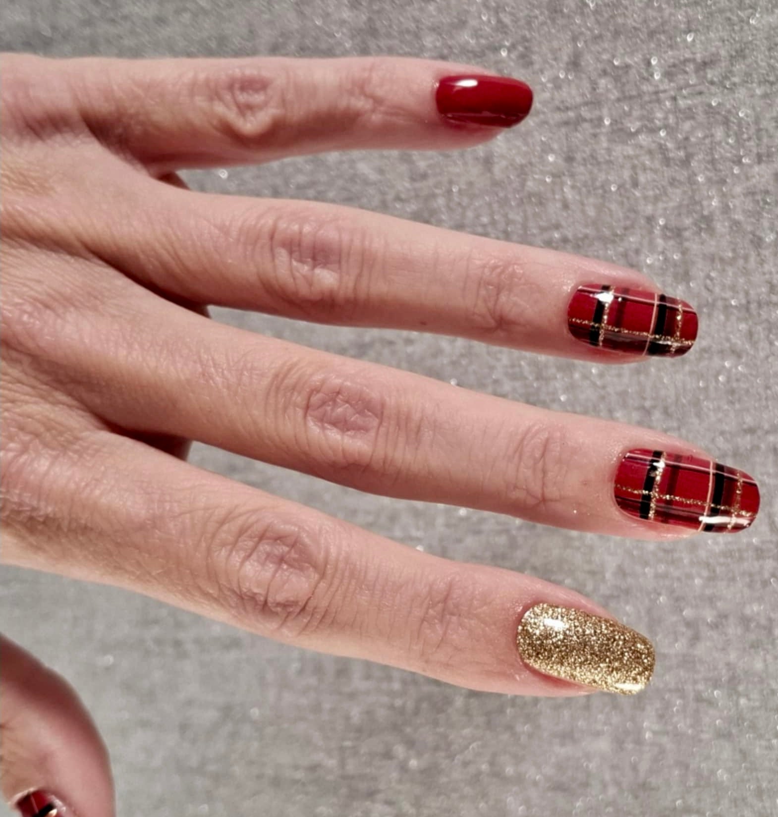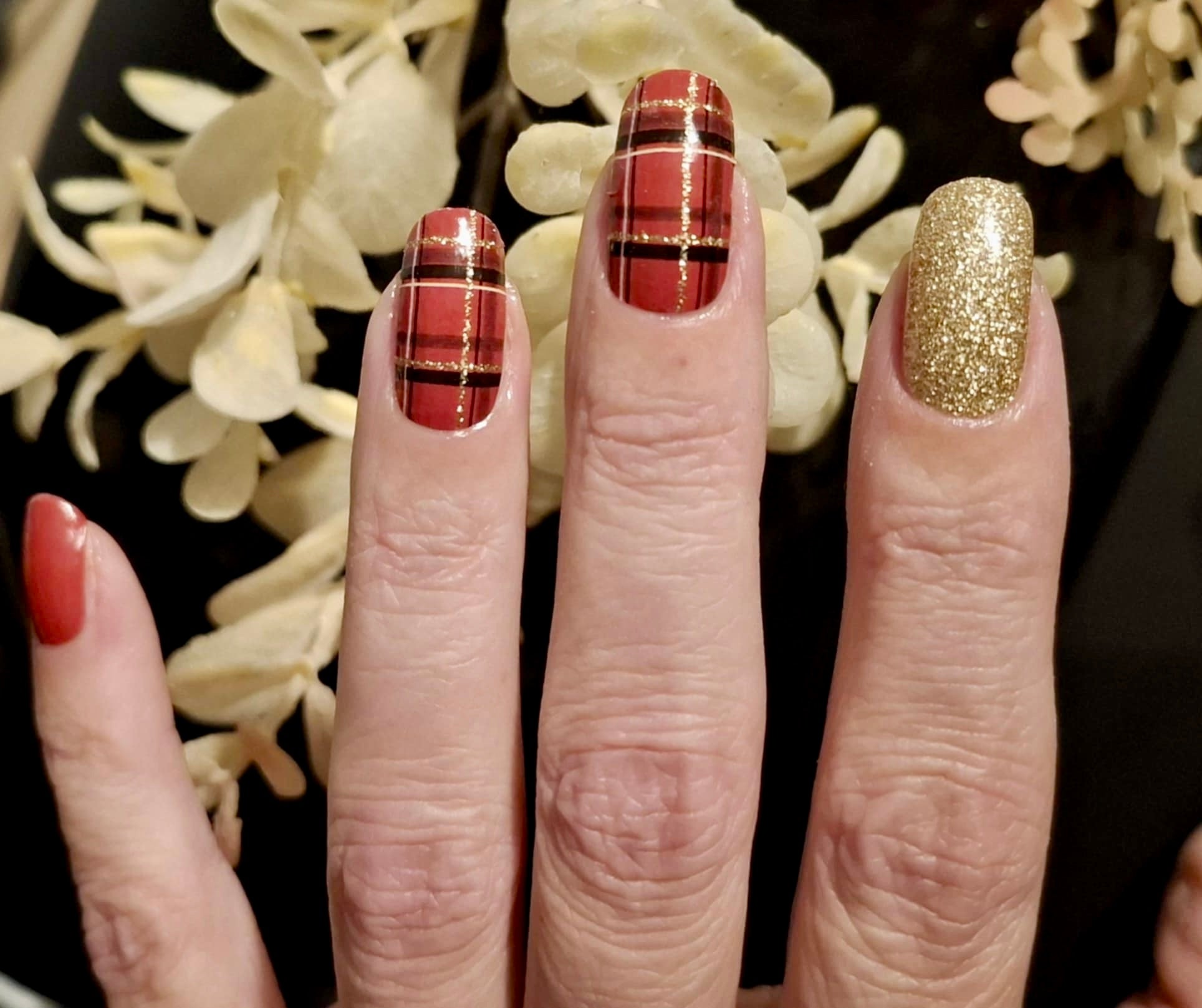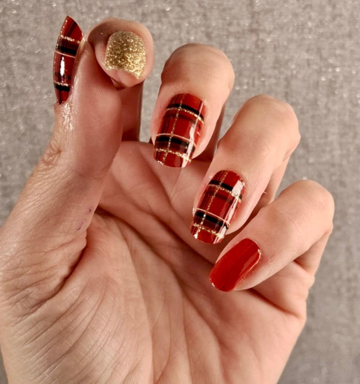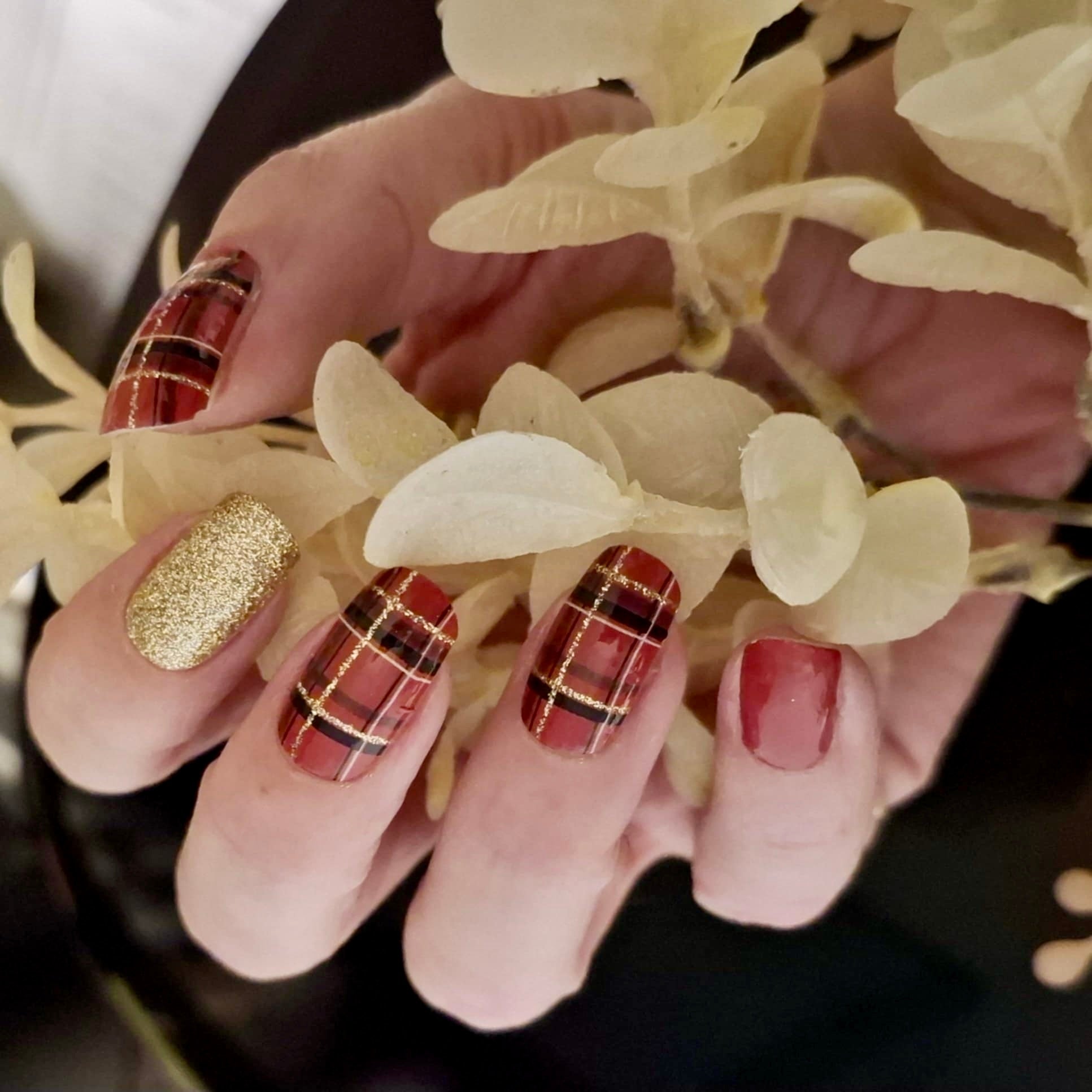 Folie als Komplettdesign mit Schottenmuster und Goldglitzer