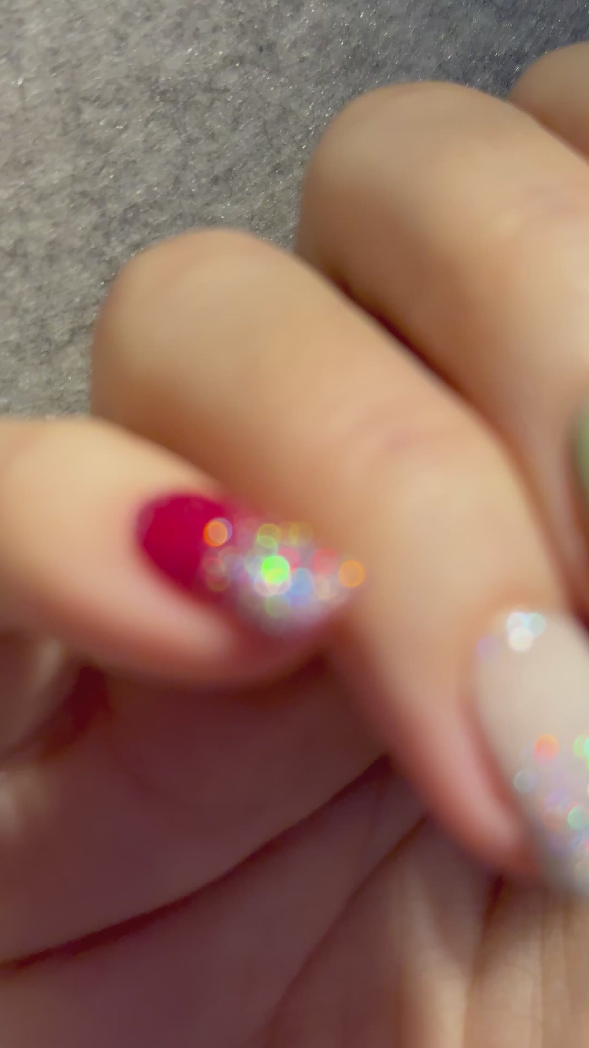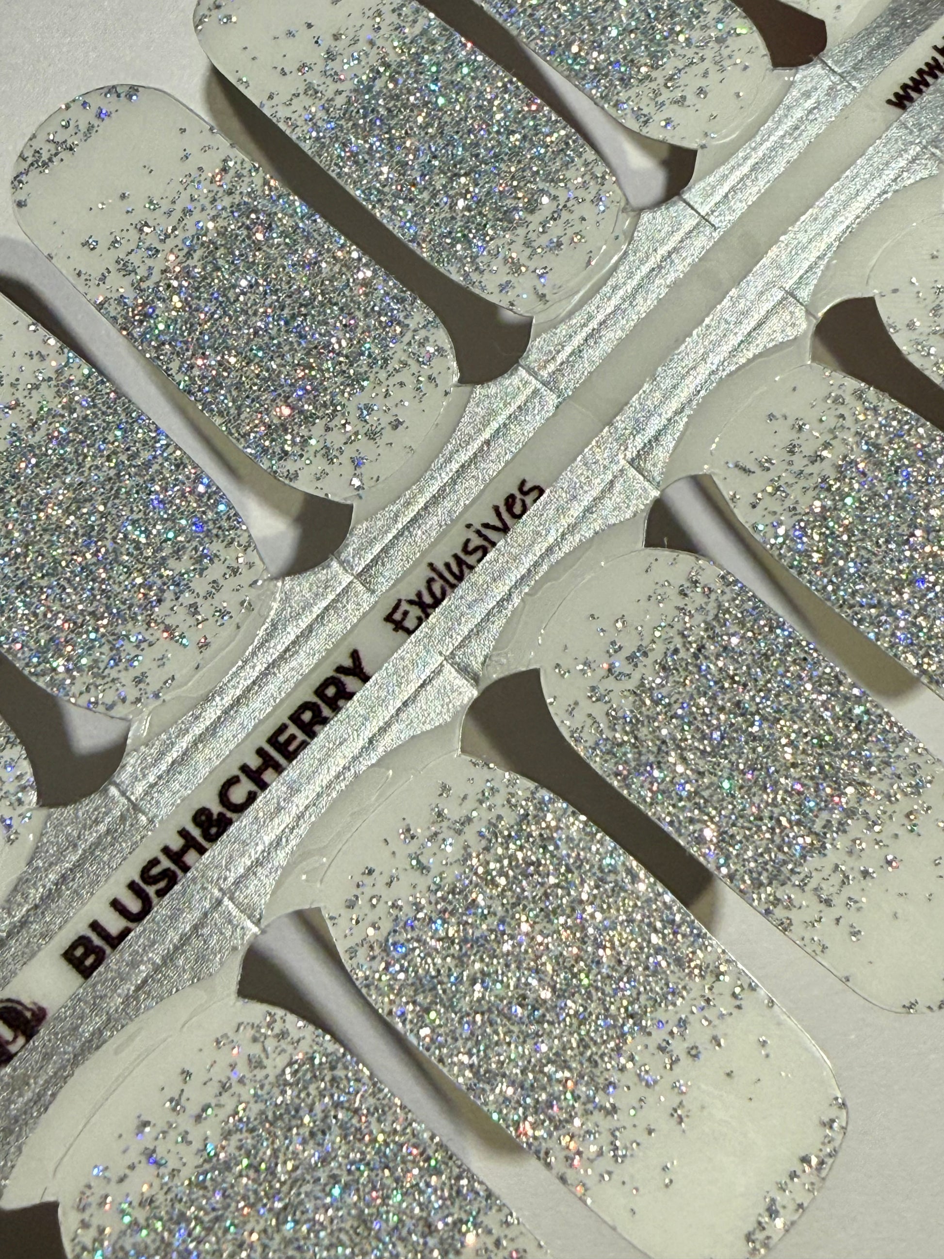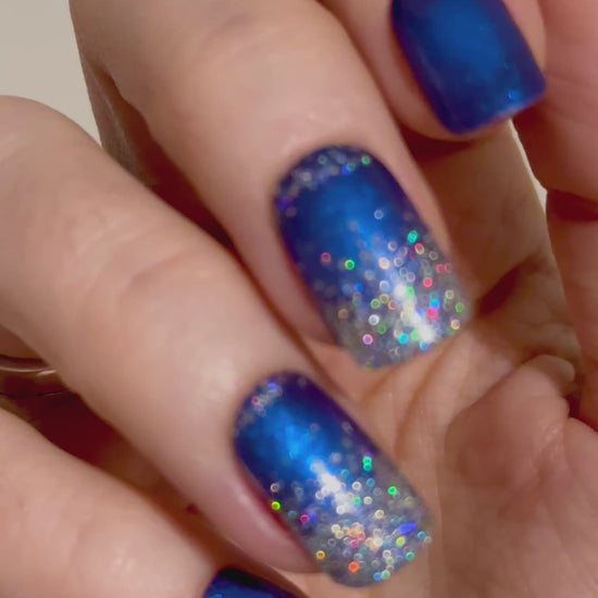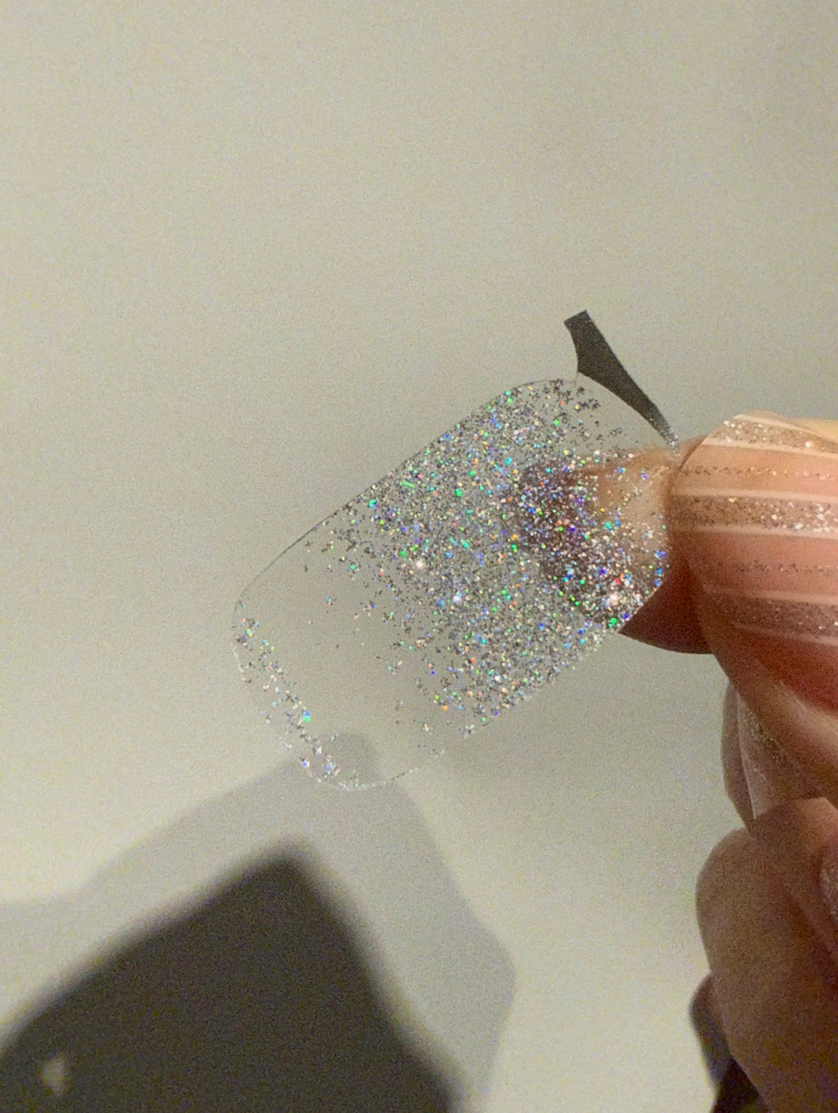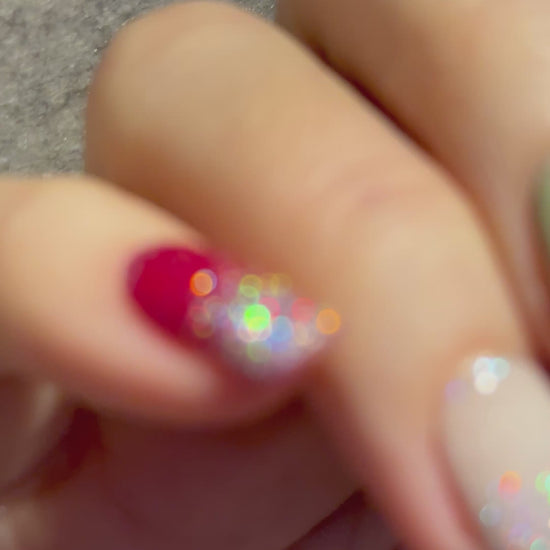 Overlay mit stark holographischem French- und Cuticle-Glitzer.