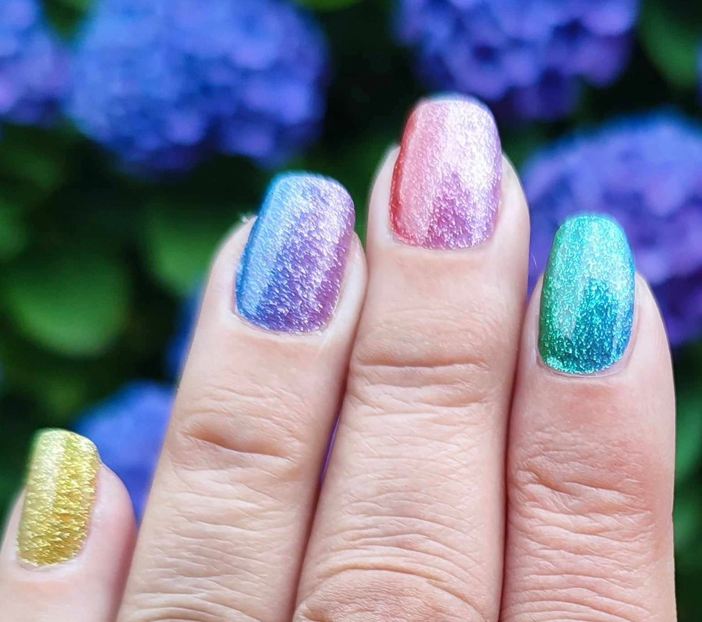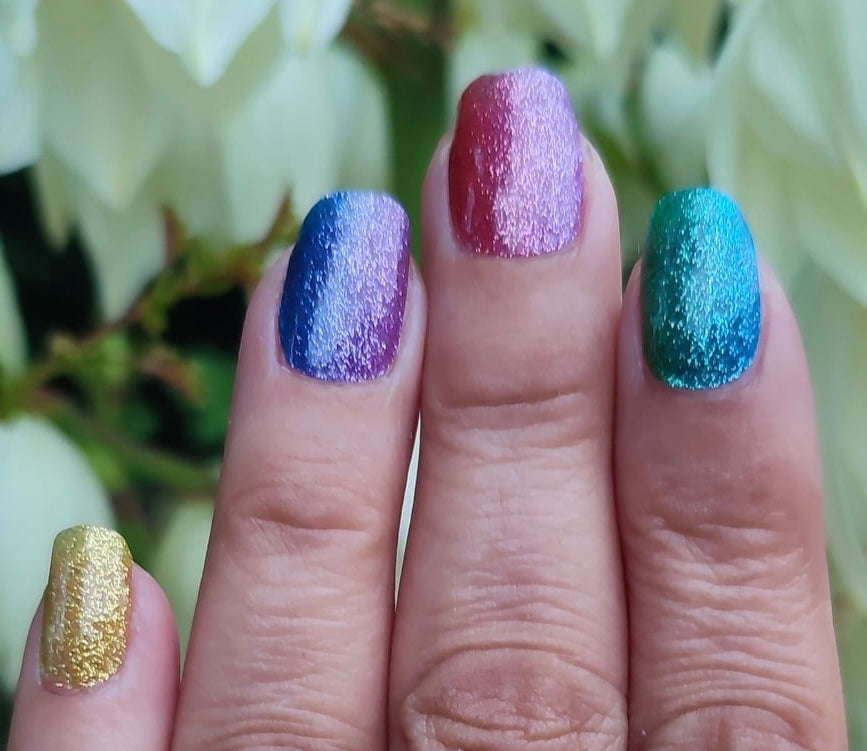 May contain: D&C Red NO.6 Barium Lake, D&C Red NO.7 Calcium Lake, FD&C Yellow NO.5 Aluminum Lake, D&C Yellow NO.10, FD&C Blue NO.1, Black Iron Oxide, Titanium Dioxide, Aluminum Powder, Bismuth Oxychloride, Mica, Isobutylphenoxy Epoxy resins, Polyethylene terephthalate, Fragrance Compound