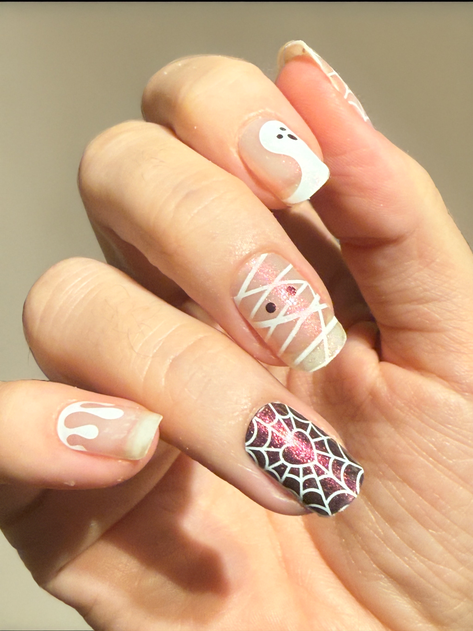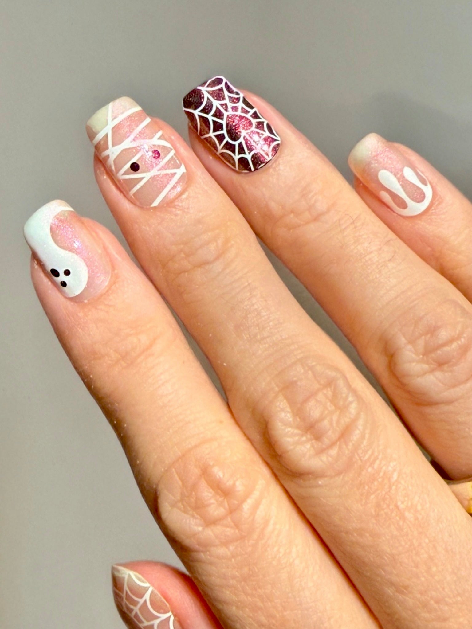 Halloween-Overlay mit Mumien und Spinnennetzen und einem zarten, pinken Mermaid-Finish.