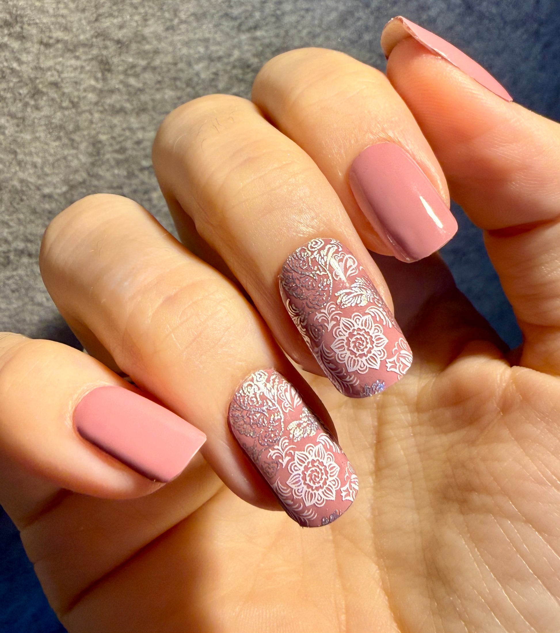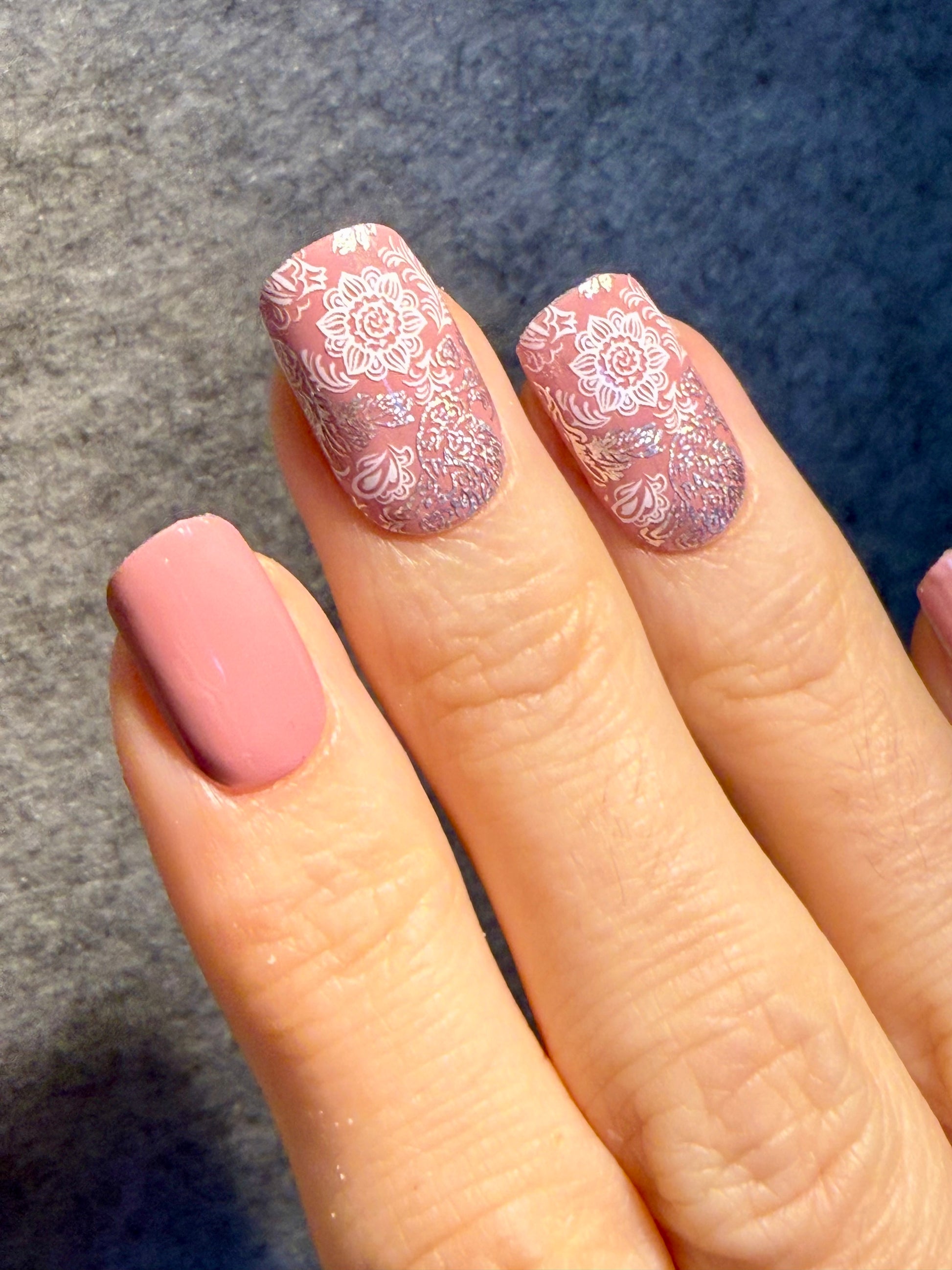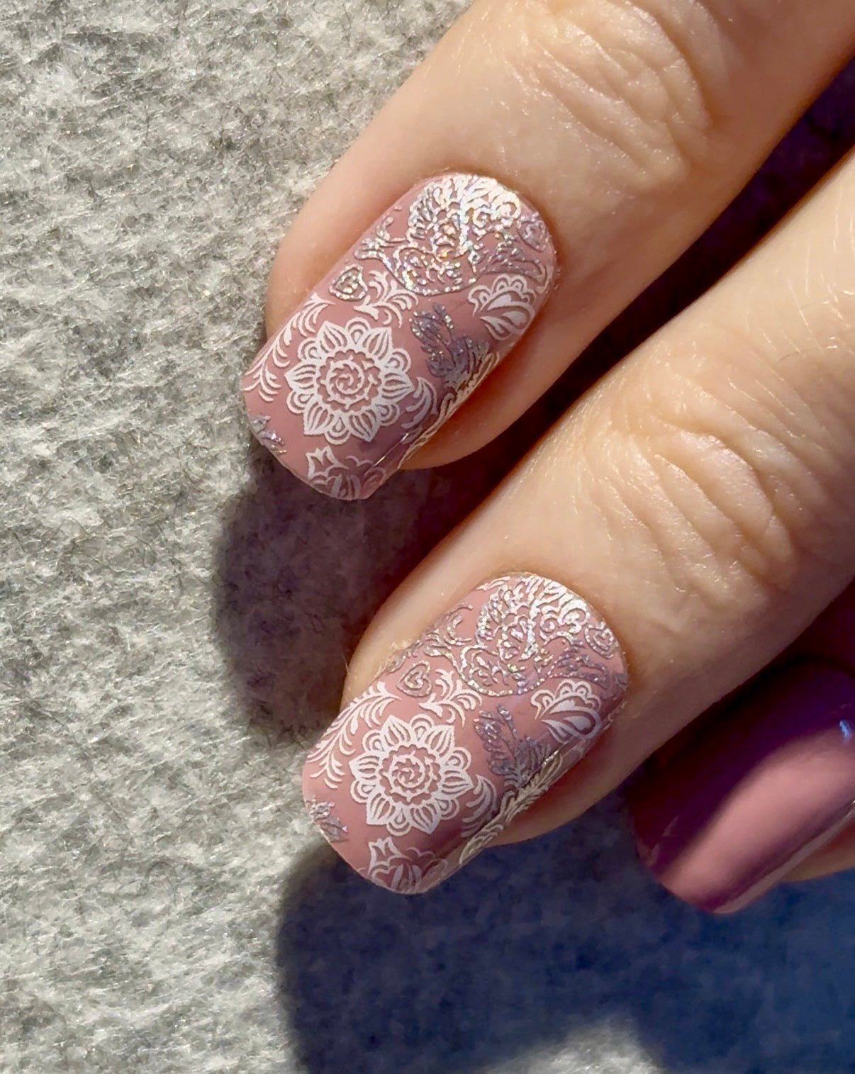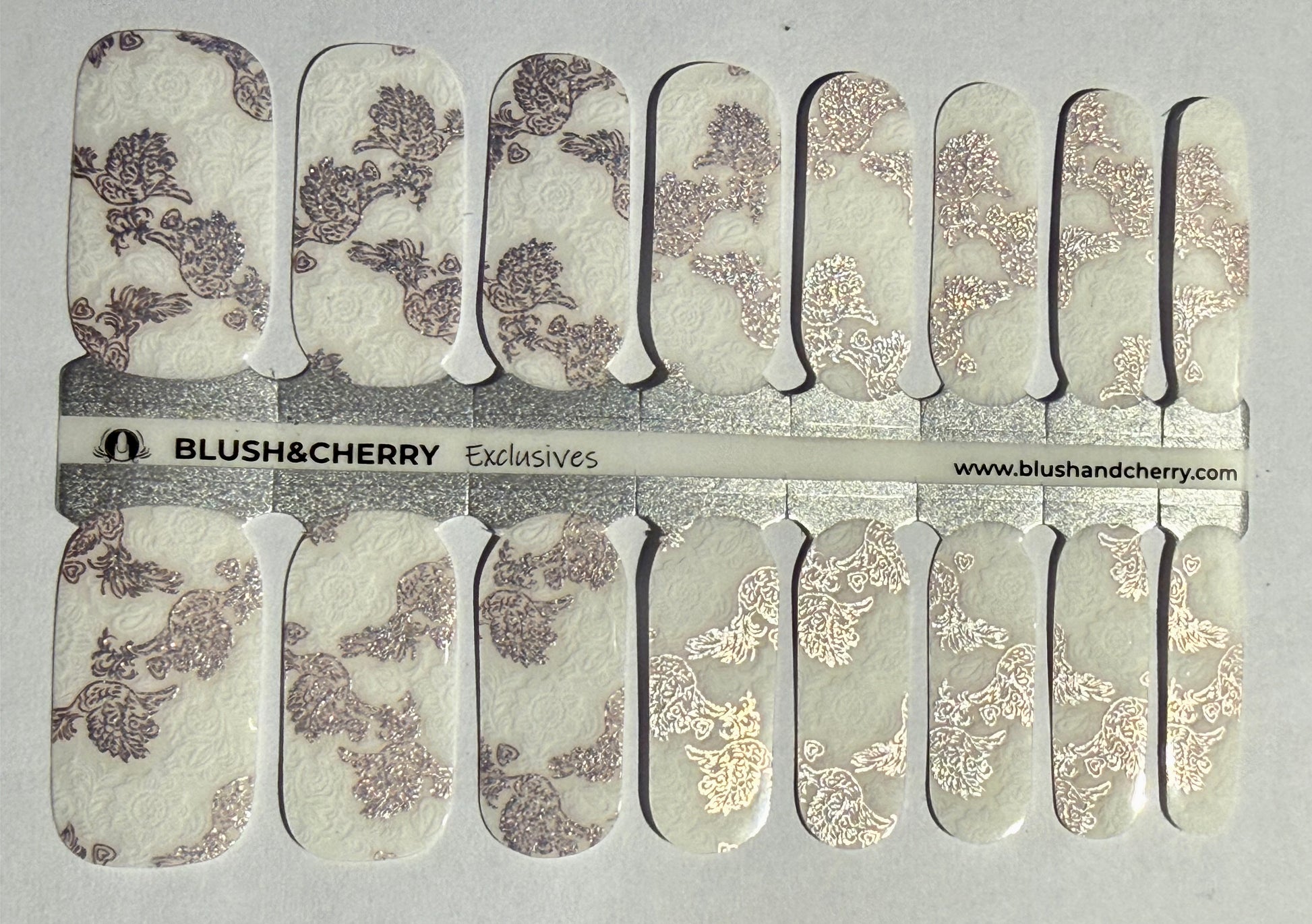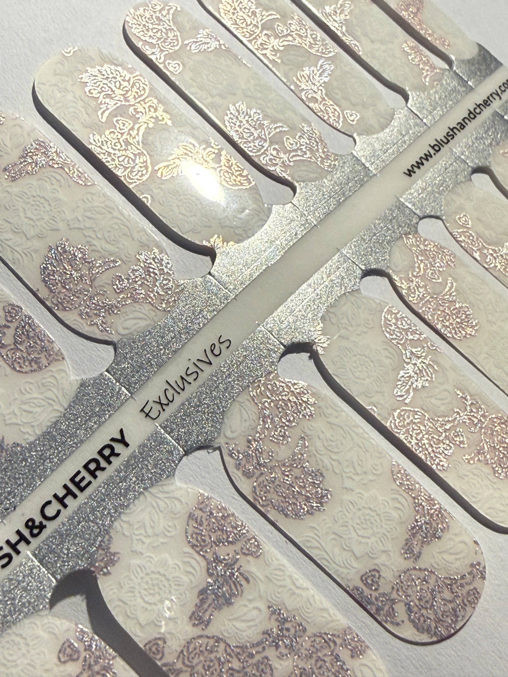 Zauberhaftes Overlay mit weißen und zart holo-rosé farbigen Ornamenten