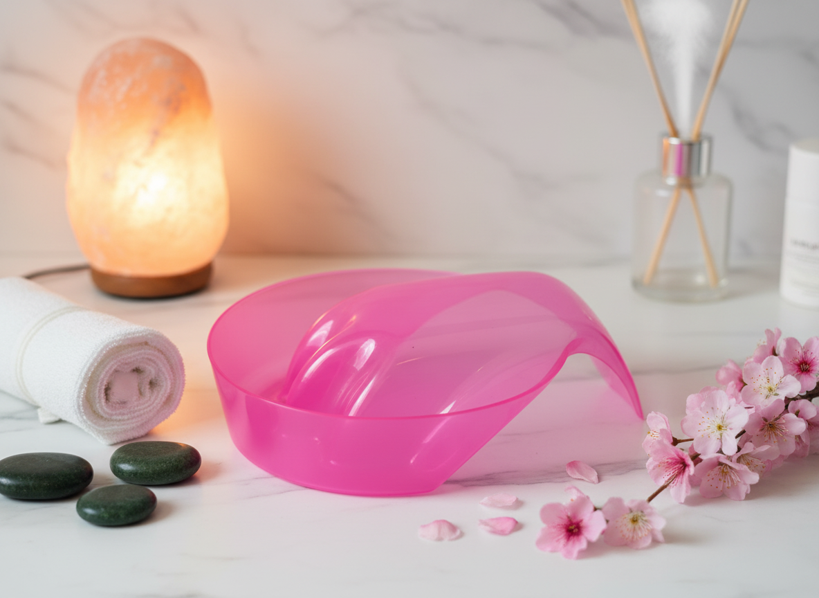 Schüssel mit gewünschtem Pflegeinhalt füllen und Hände so platzieren, dass die Finger in den Ausbuchtungen liegen und die Nägel in der Pflegeflüssigkeit ruhen.