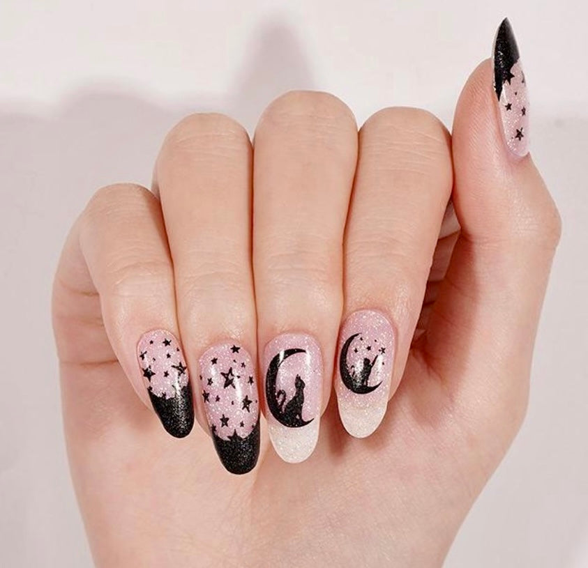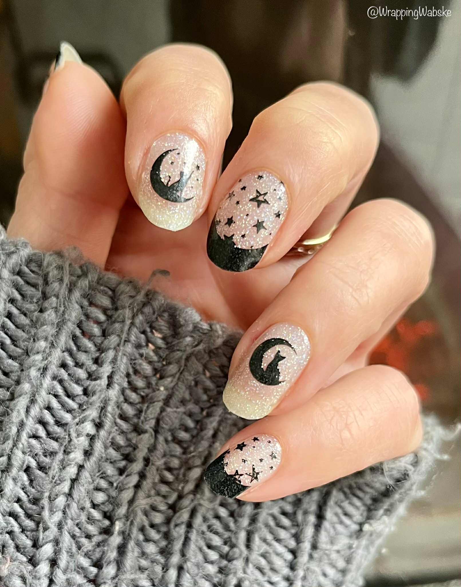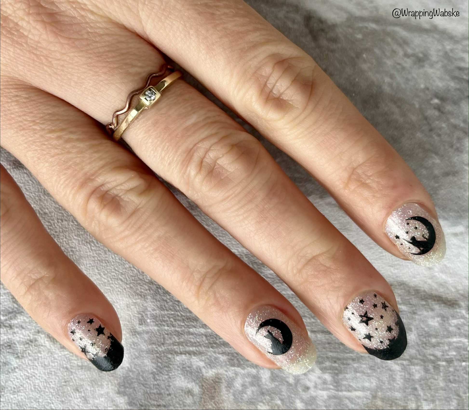 Semitransparente Folie mit silbernem Glitzer, French und Katzenmotiven