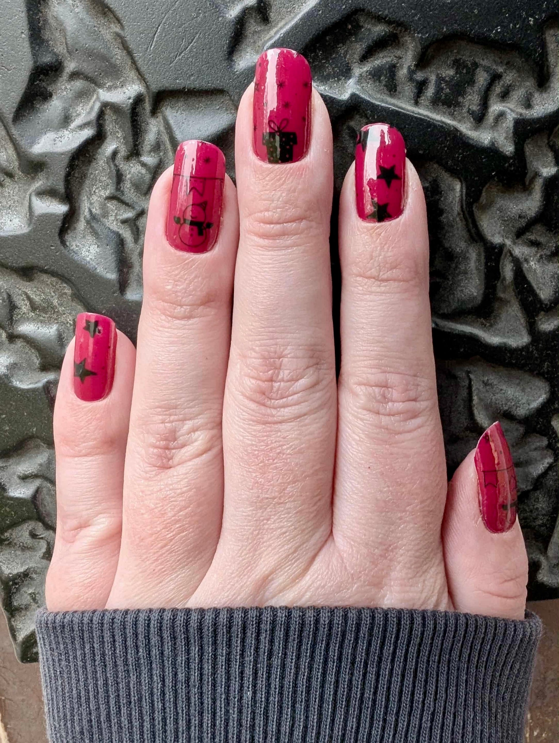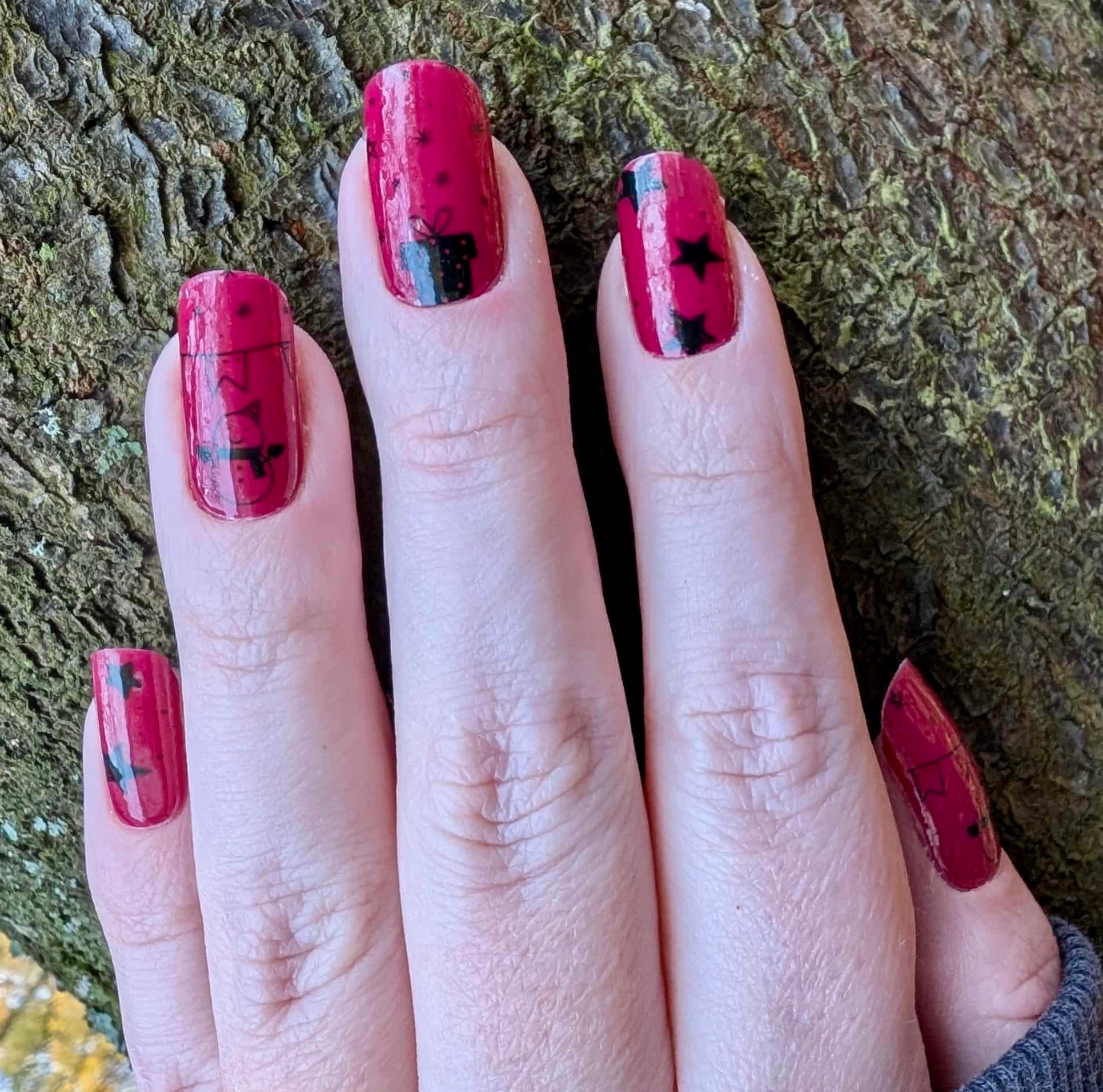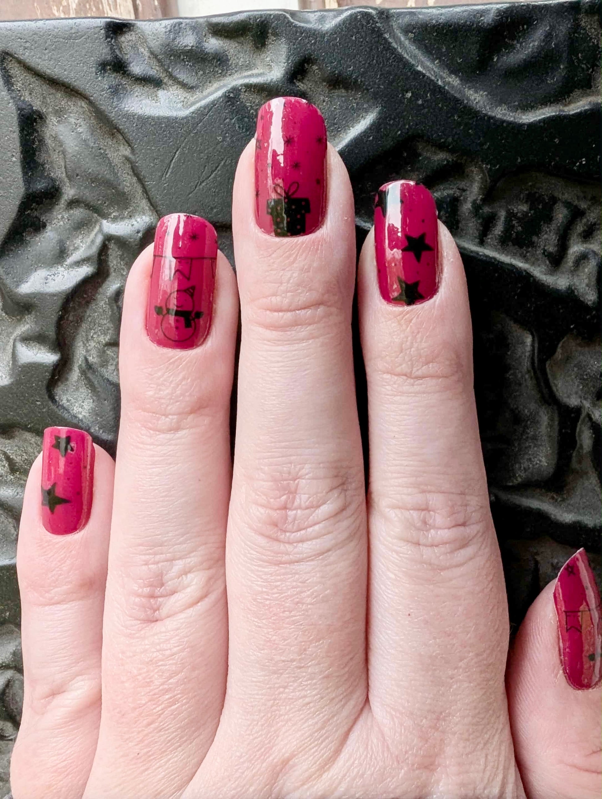 Overlays sind teiltransparent und kommen am besten zur Geltung, wenn sie über eine farbige Folie oder farbigen Nagellack geklebt werden. Hier geklebt auf “Uni Spanish Red”.