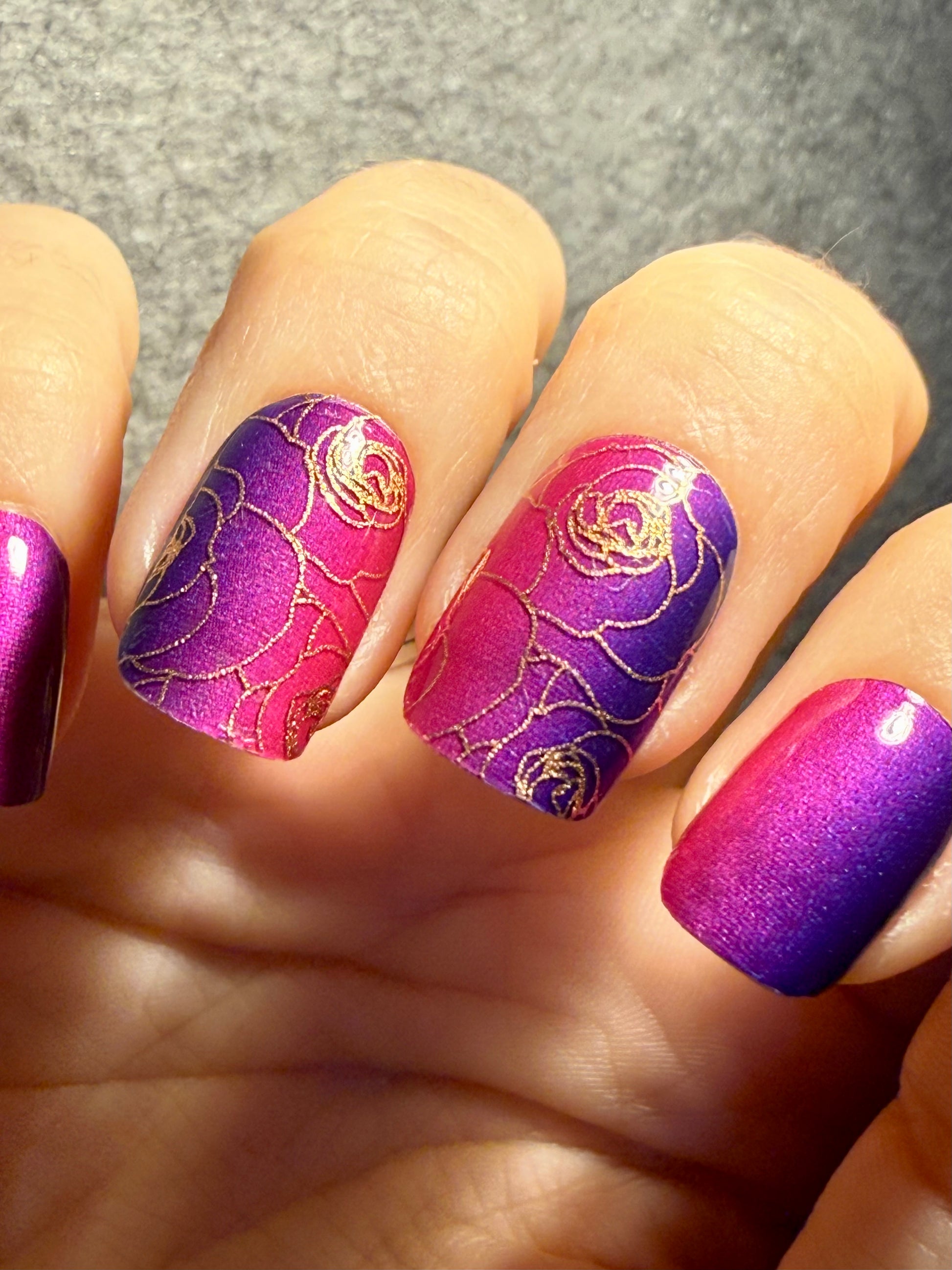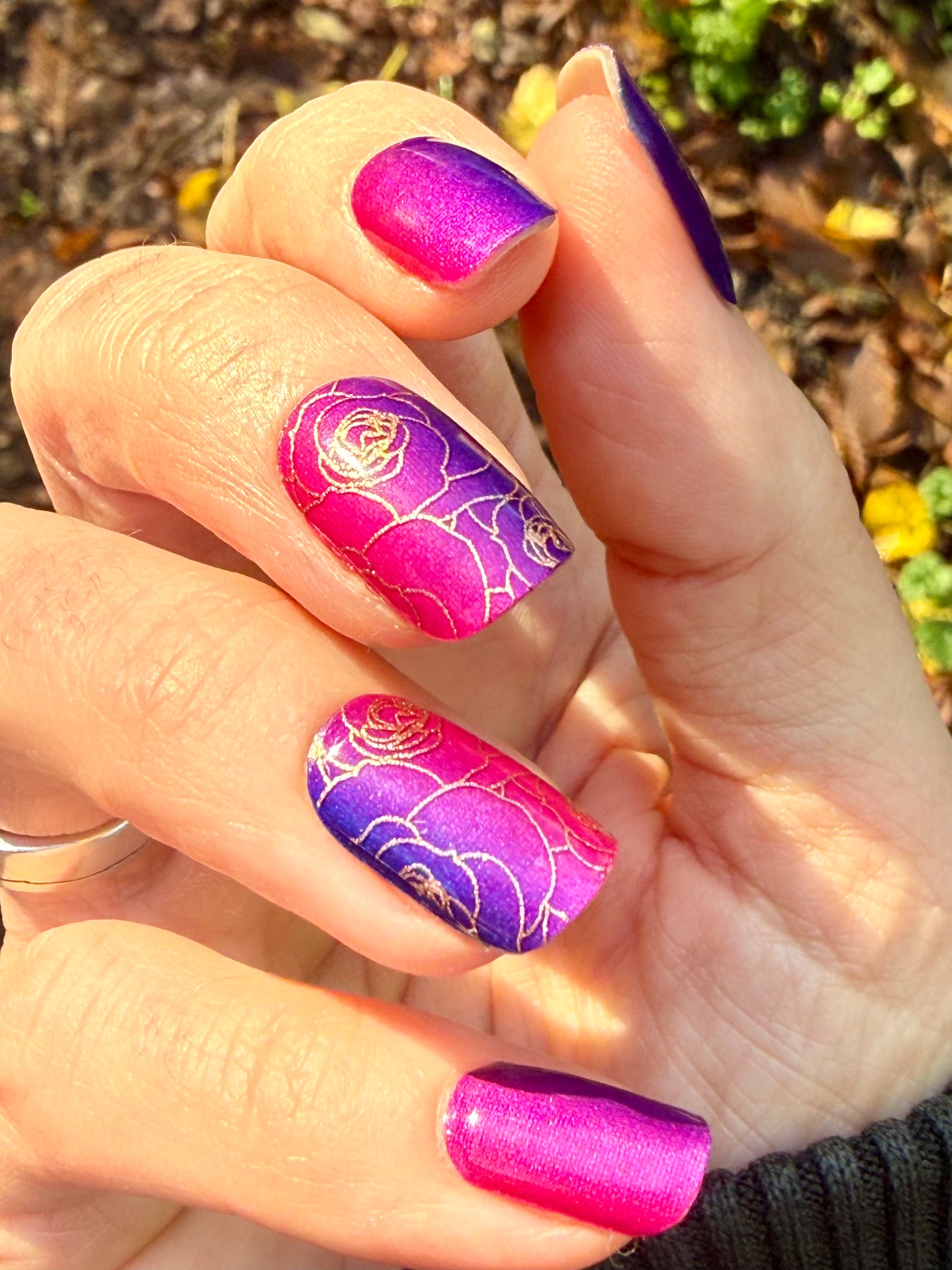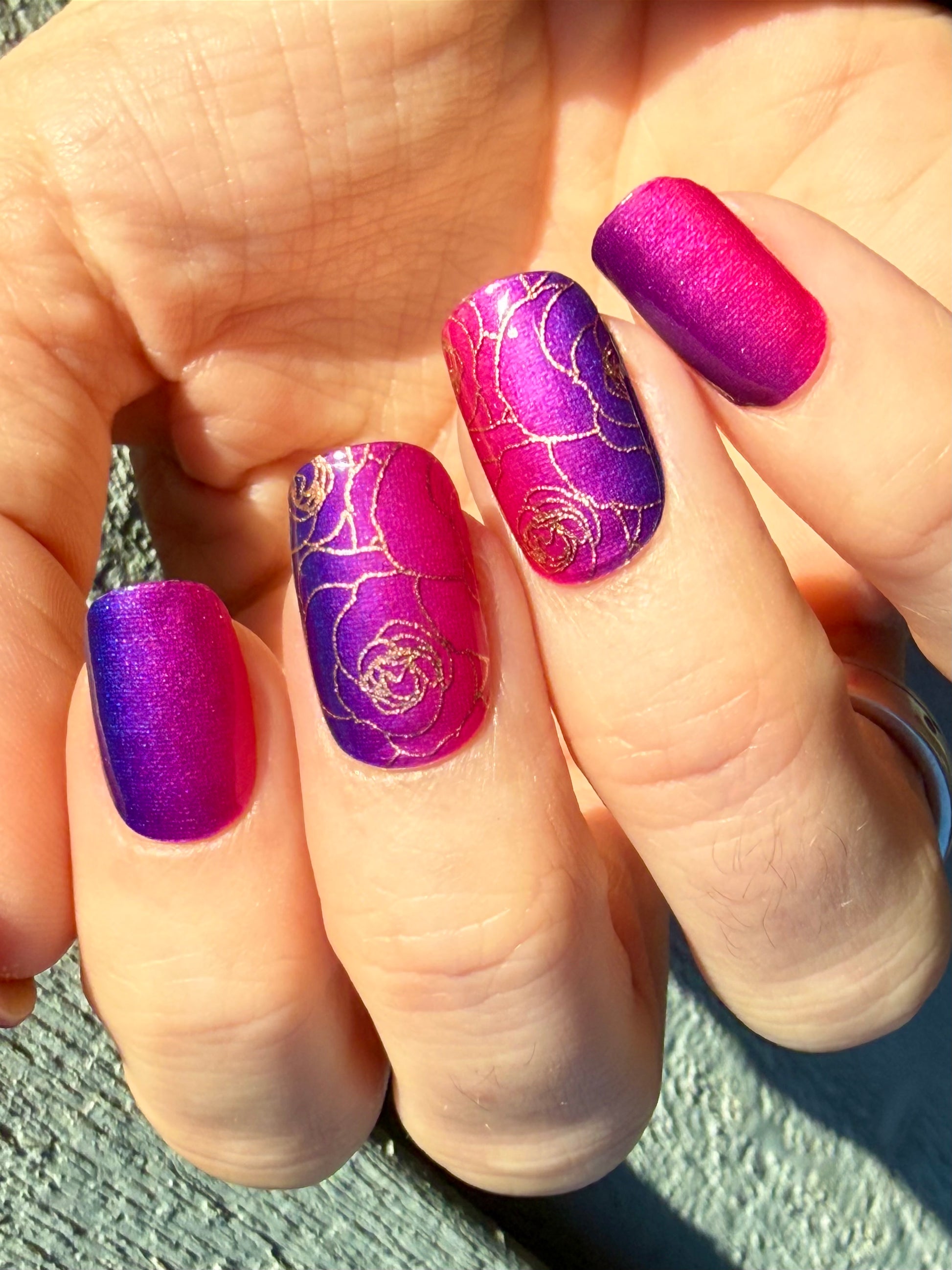 Overlays sind teiltransparent und kommen am besten zur Geltung, wenn sie über eine farbige Folie oder farbigen Nagellack geklebt werden. Hier geklebt auf “Berry Burst”.