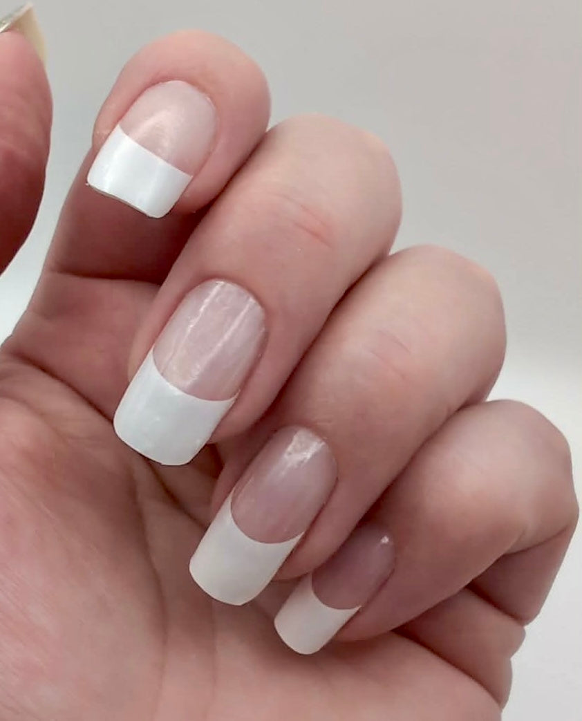 Diese Folie ist speziell für lange Nagelbetten konzipiert. Da sie am unteren Nagelhautrand transparent ist, lässt sie sich aber wunderbar auch für kürzere Nagelbetten zuschneiden.