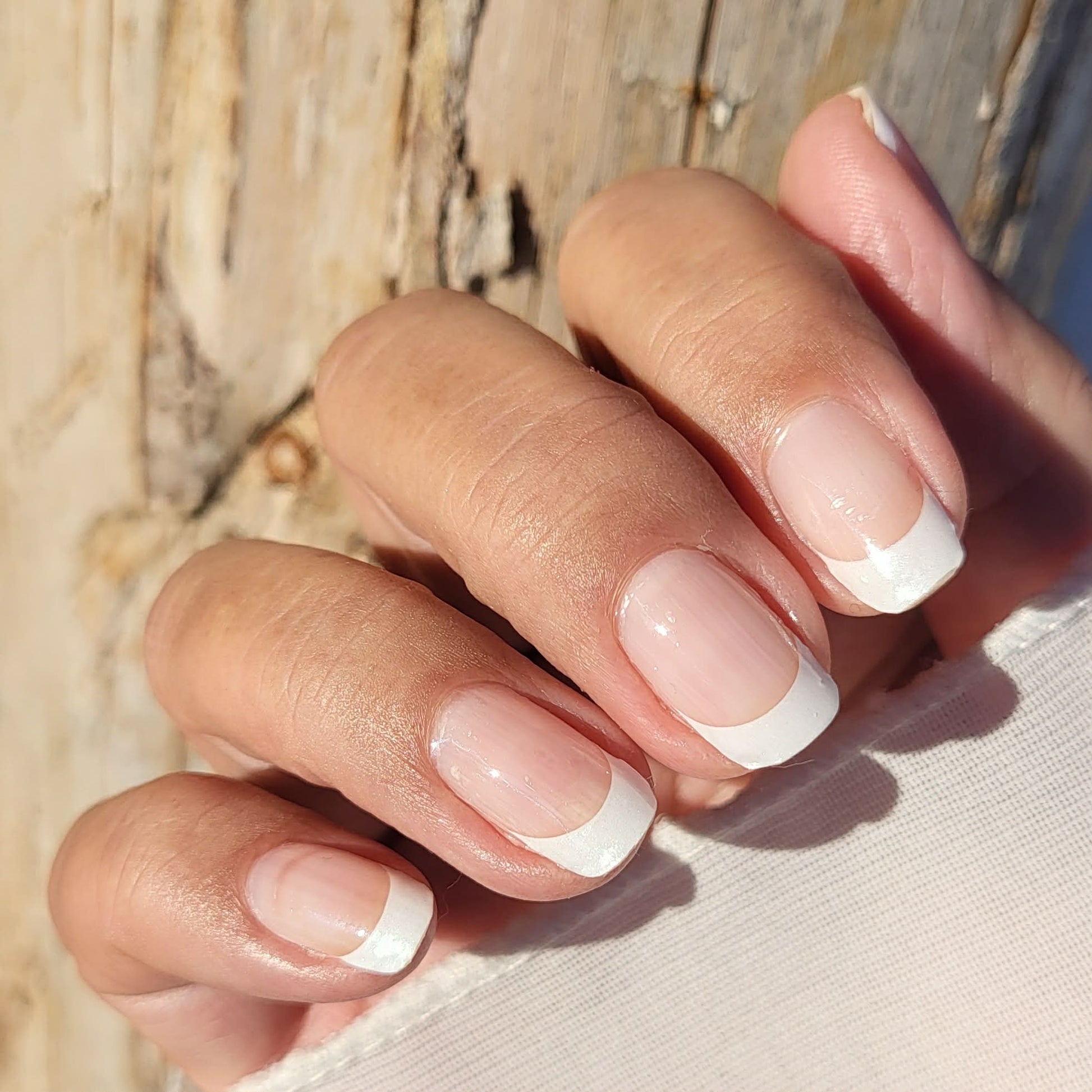 Hohes French-Overlay mit leicht schimmernder Spitze