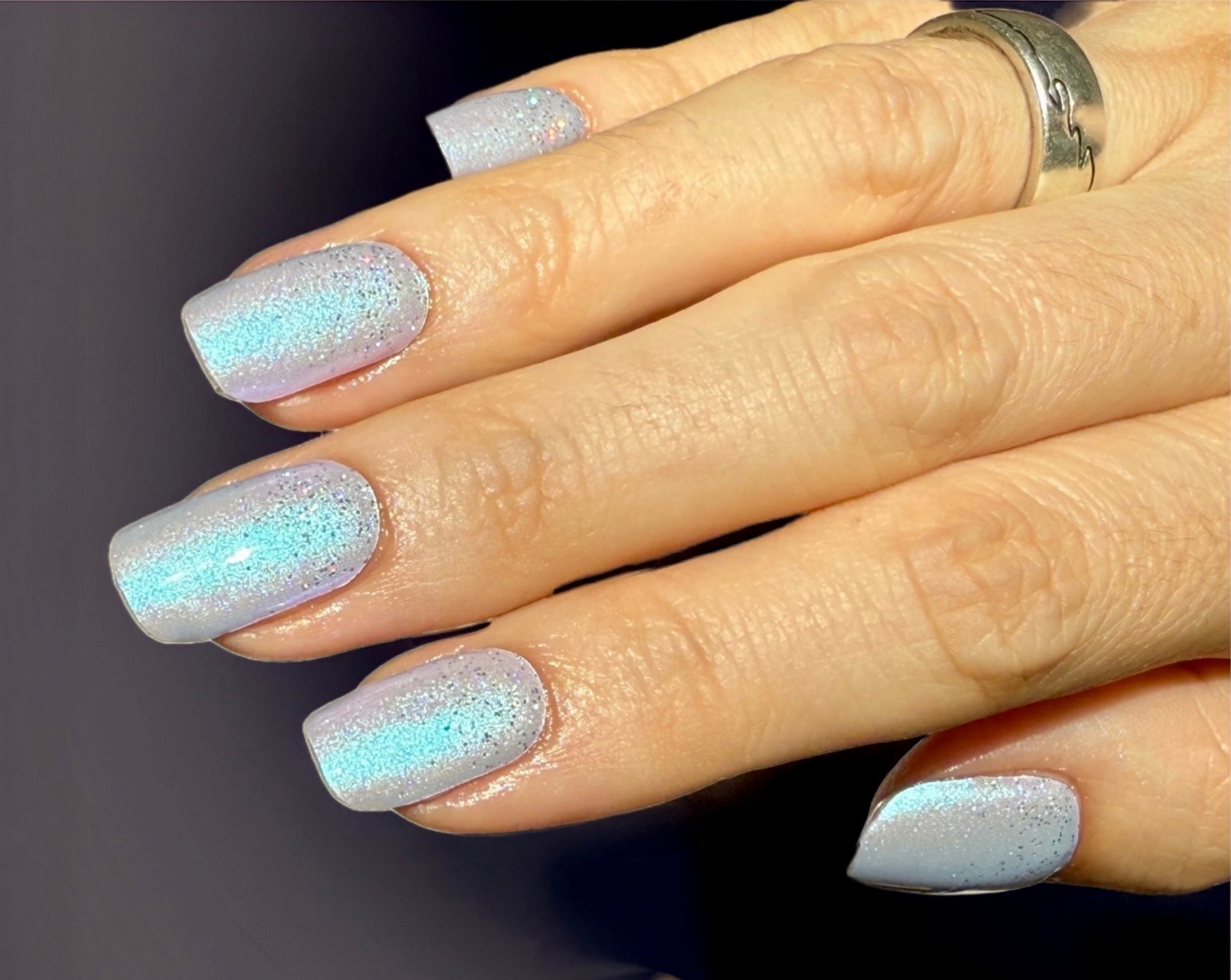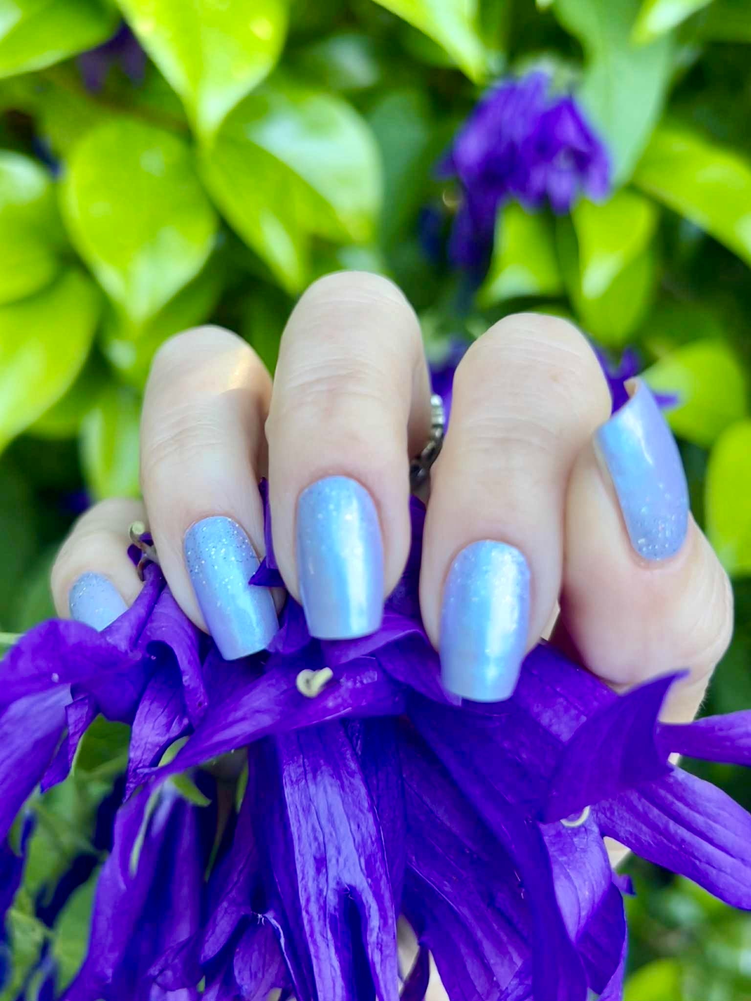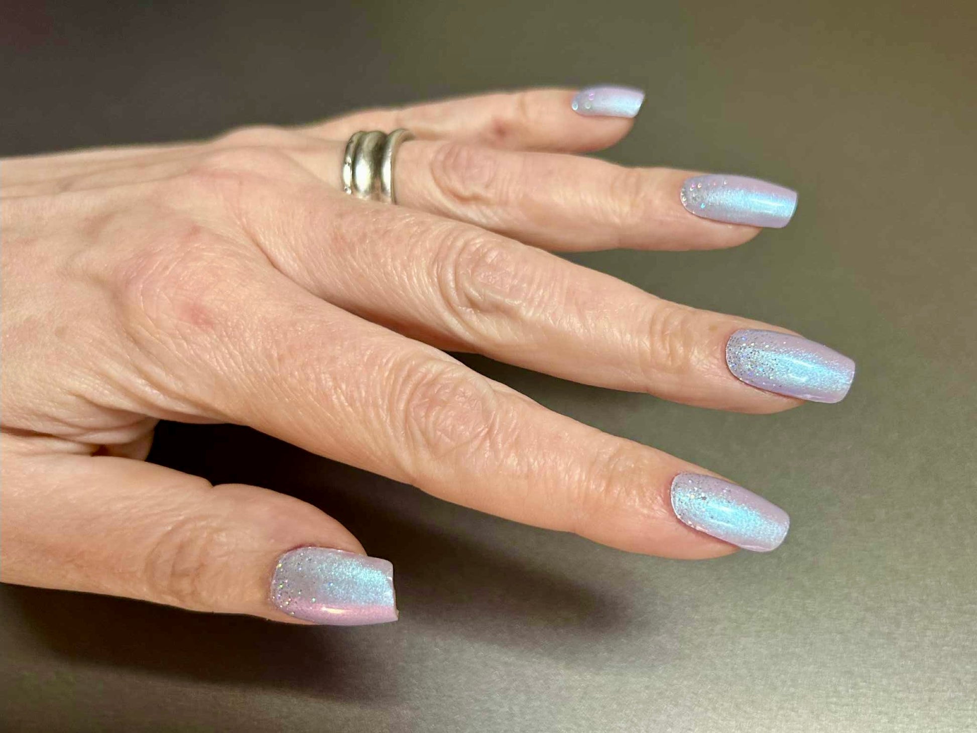 Chamäleon-Folie in blau/lila mit Glitzer.