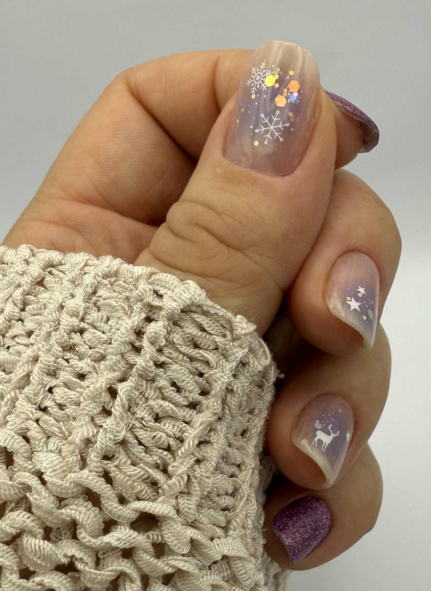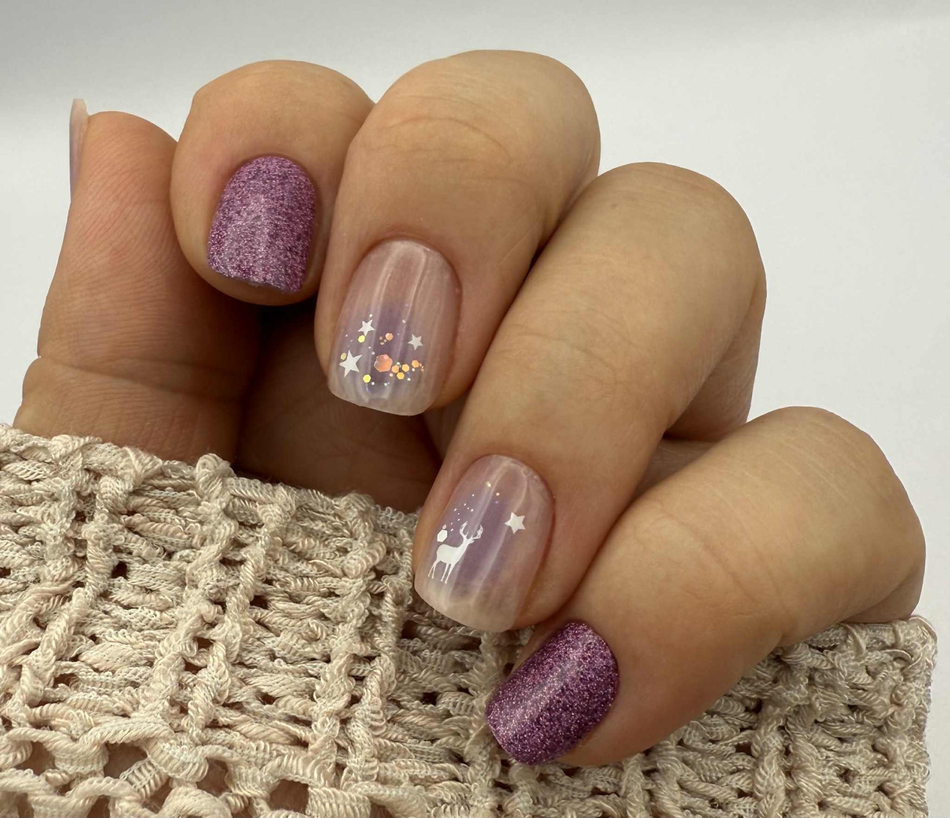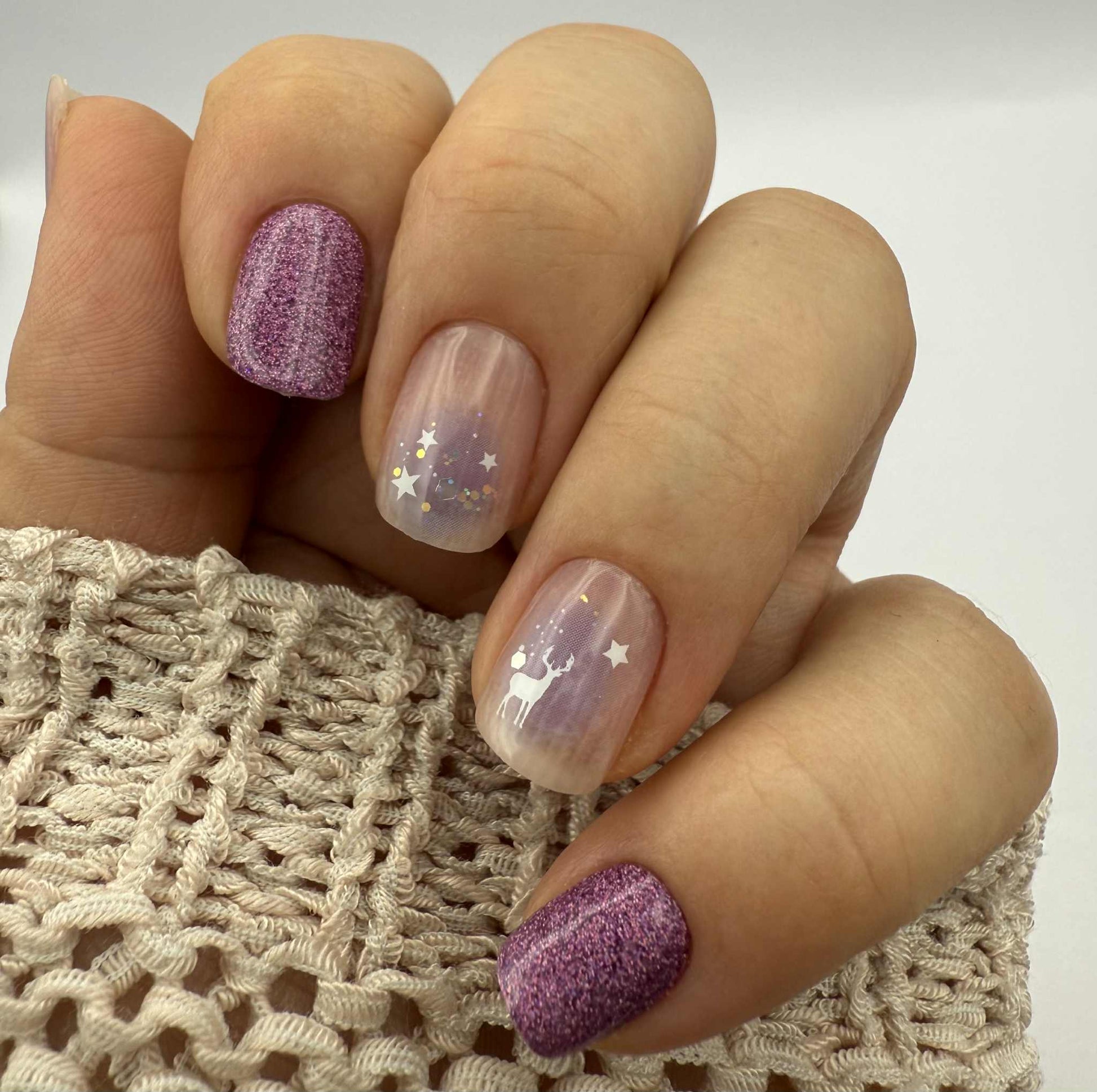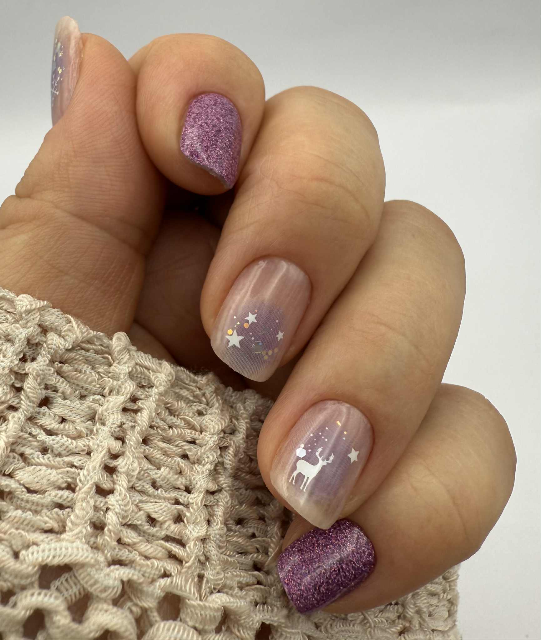 Folie mit weihnachtlichem Motiv in Kombination mit violettem Vollglitzer