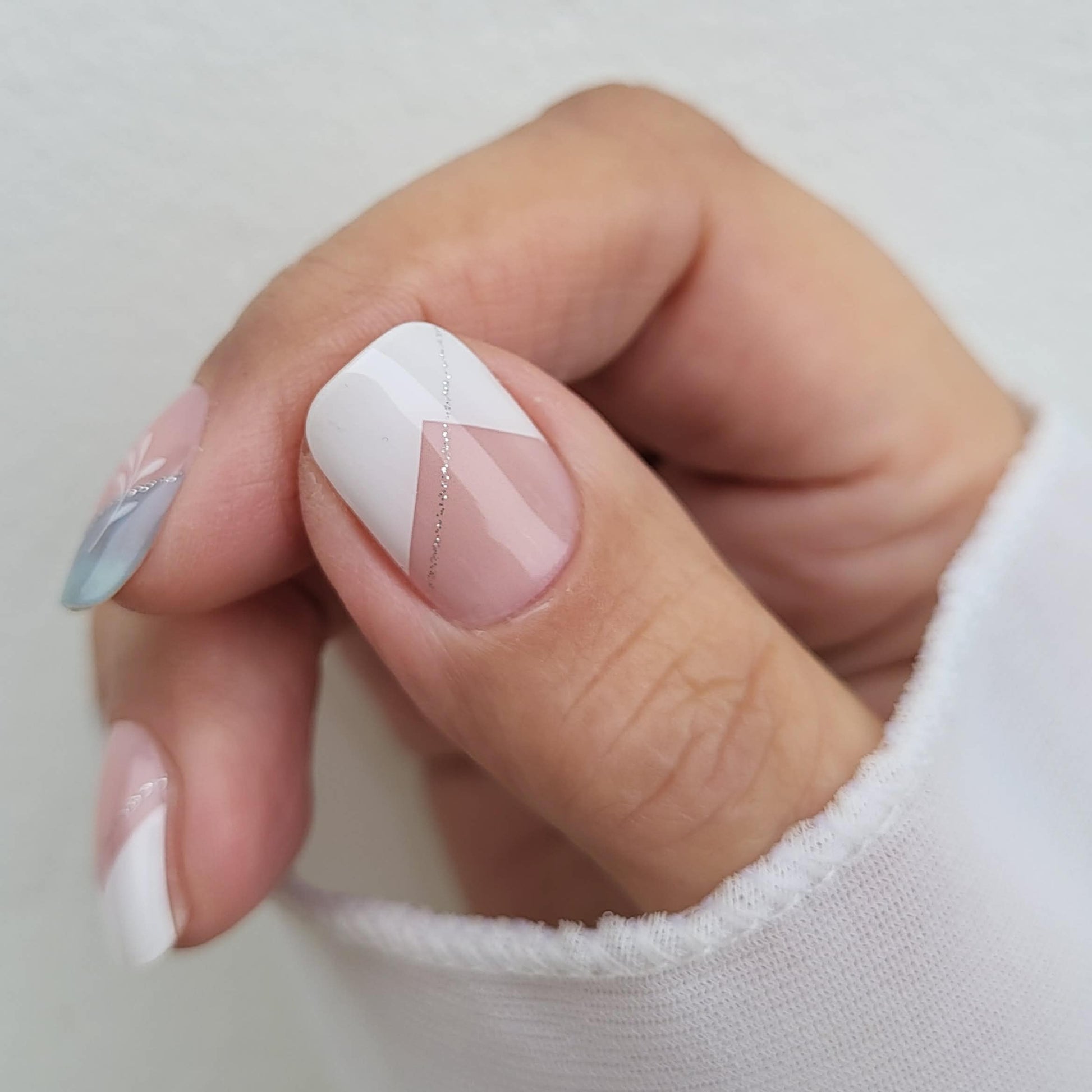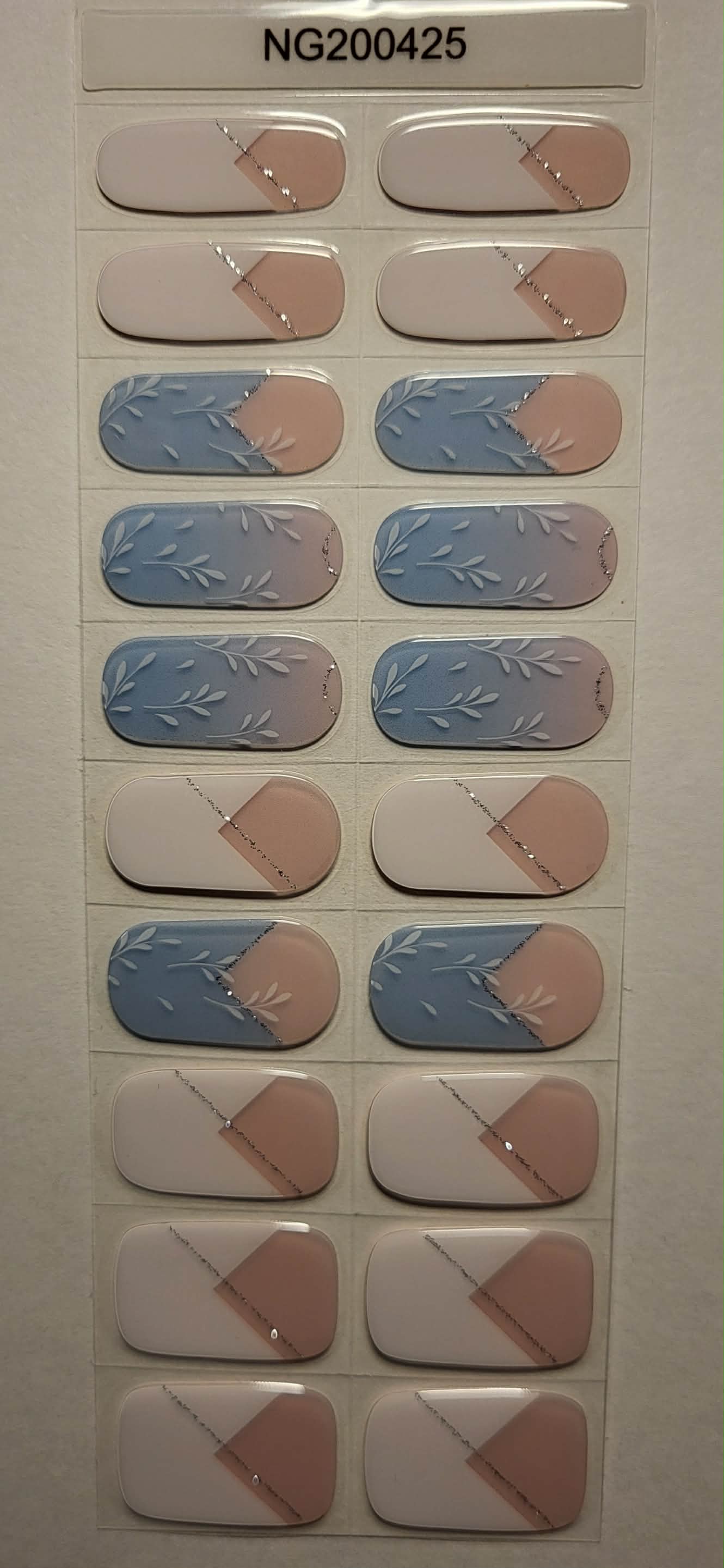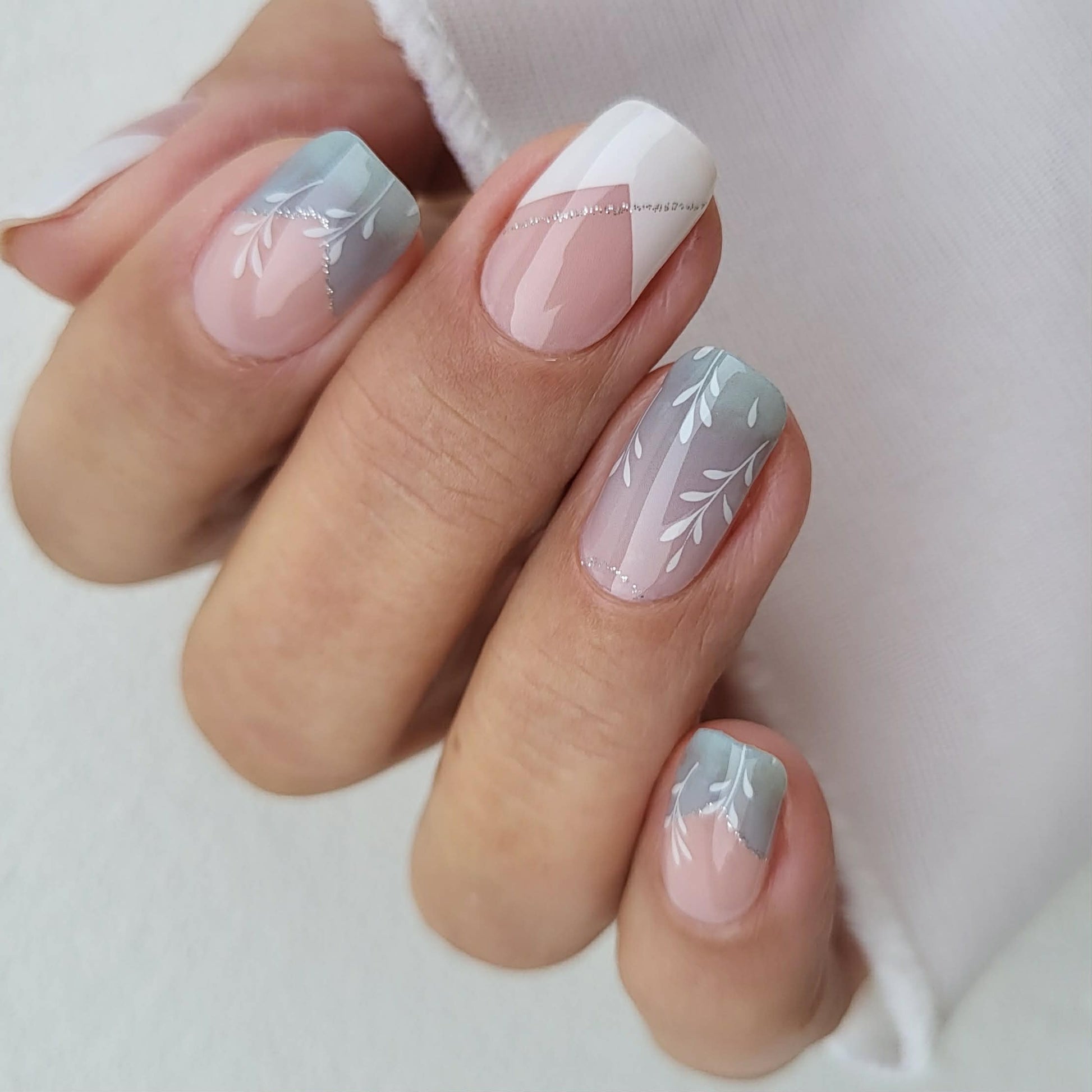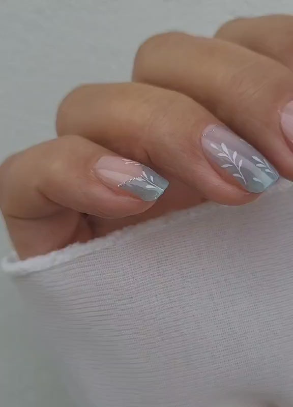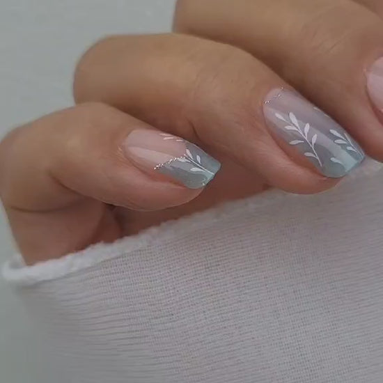 Semitransparentes Komplettdesign mit blauem Farbverlauf und French-Folien