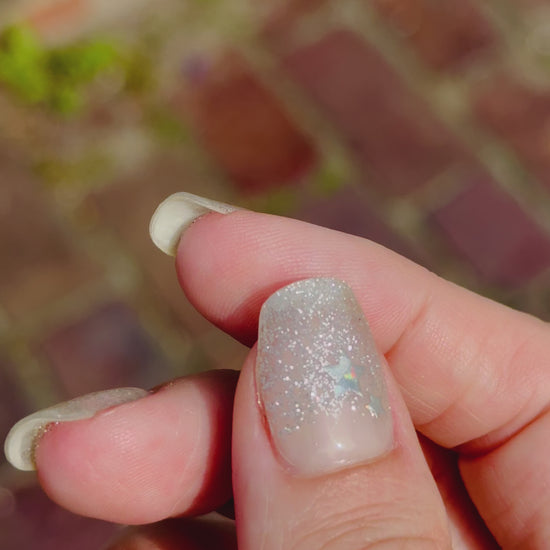 teiltransparente Folie mit silbernem Glitzer und holographischen Sternchen