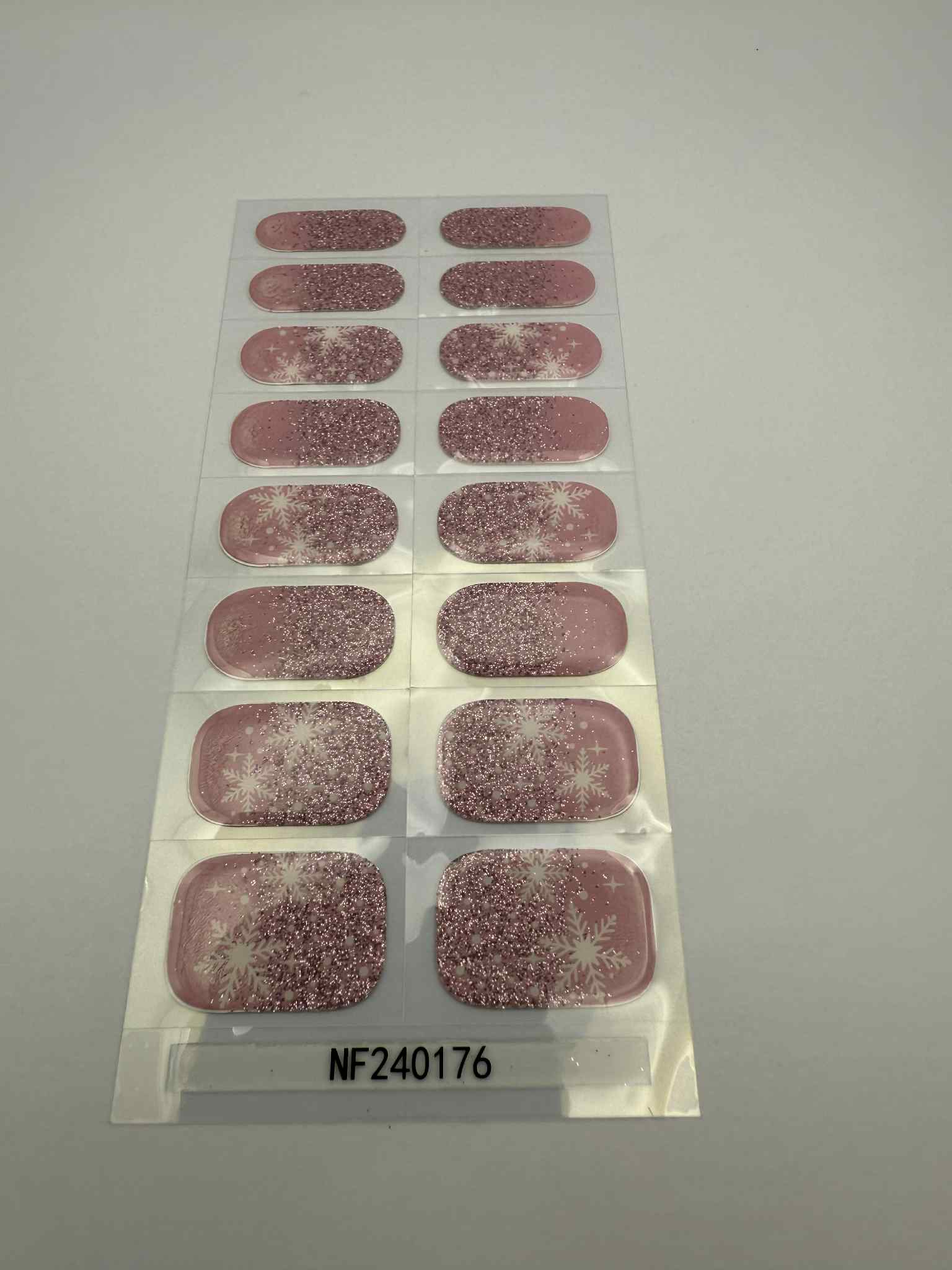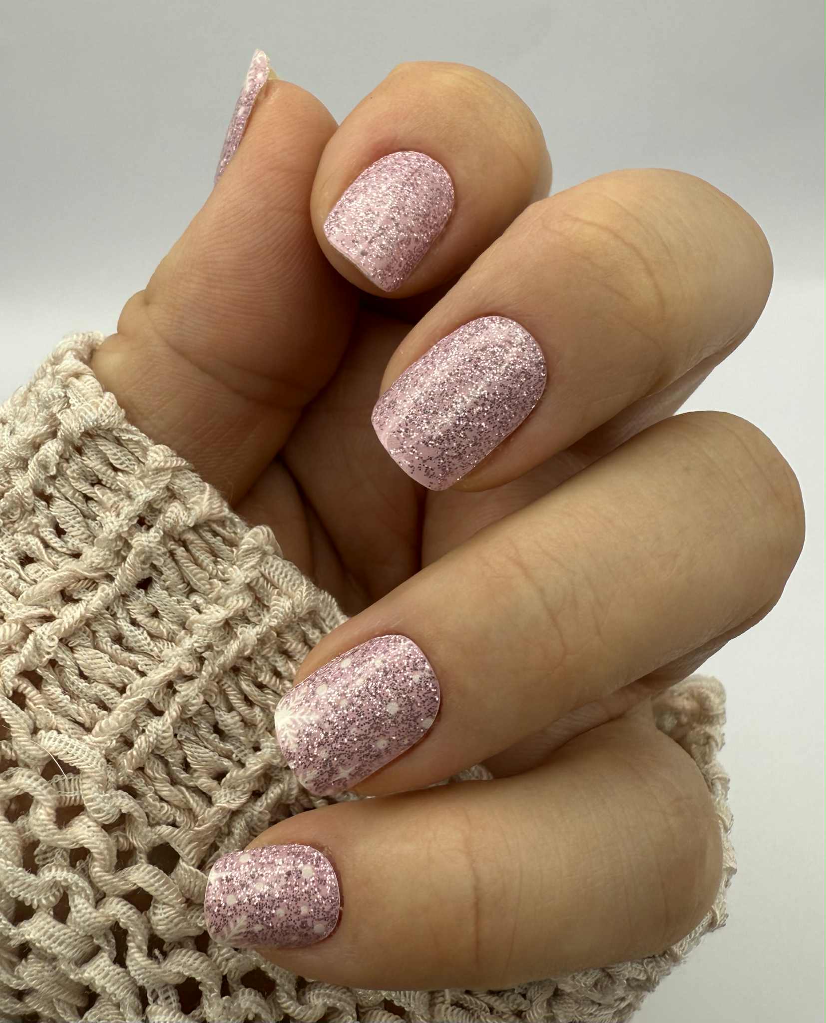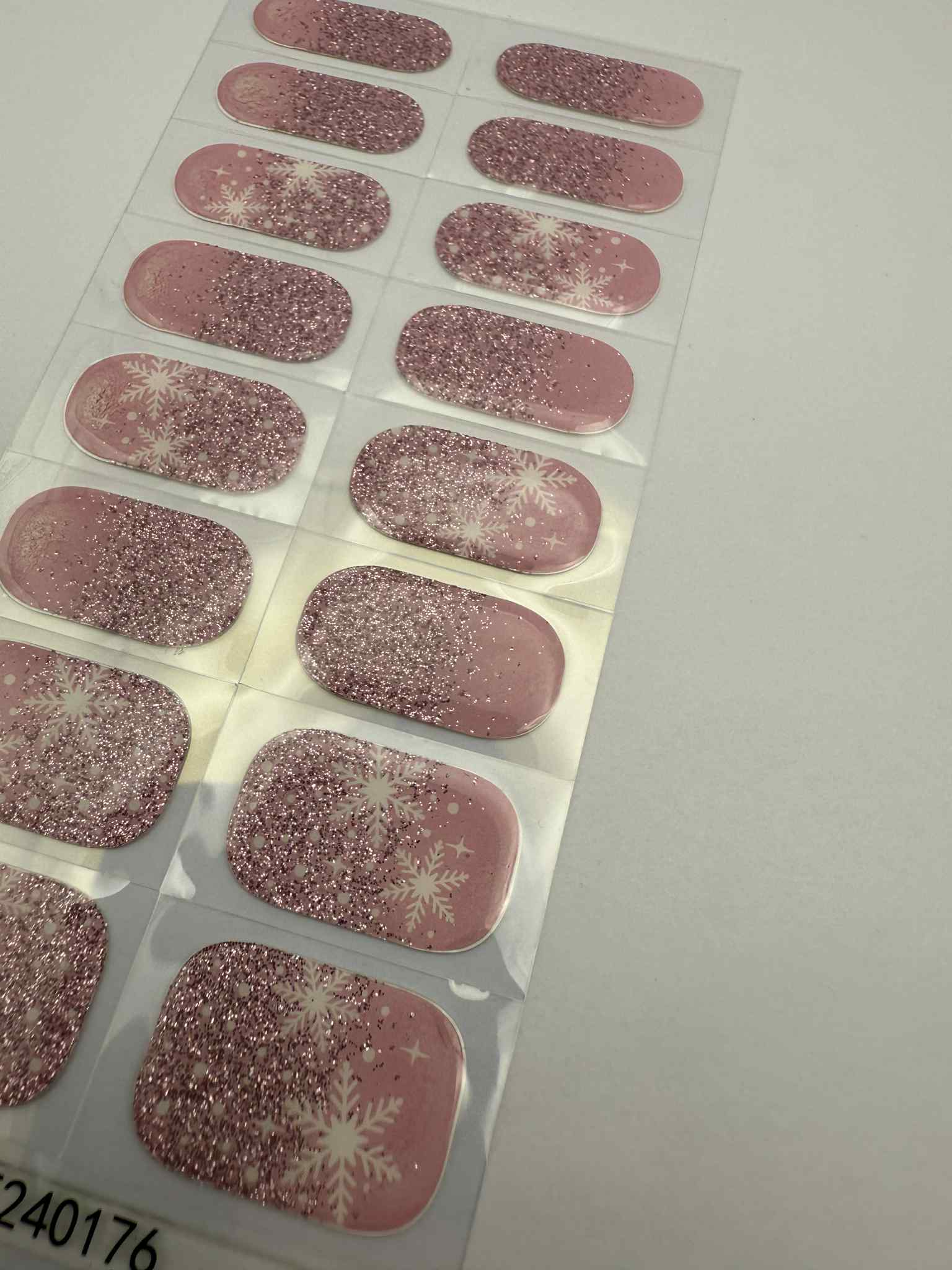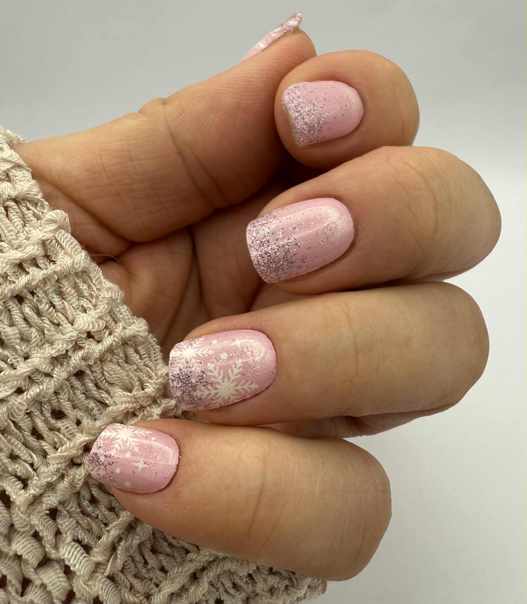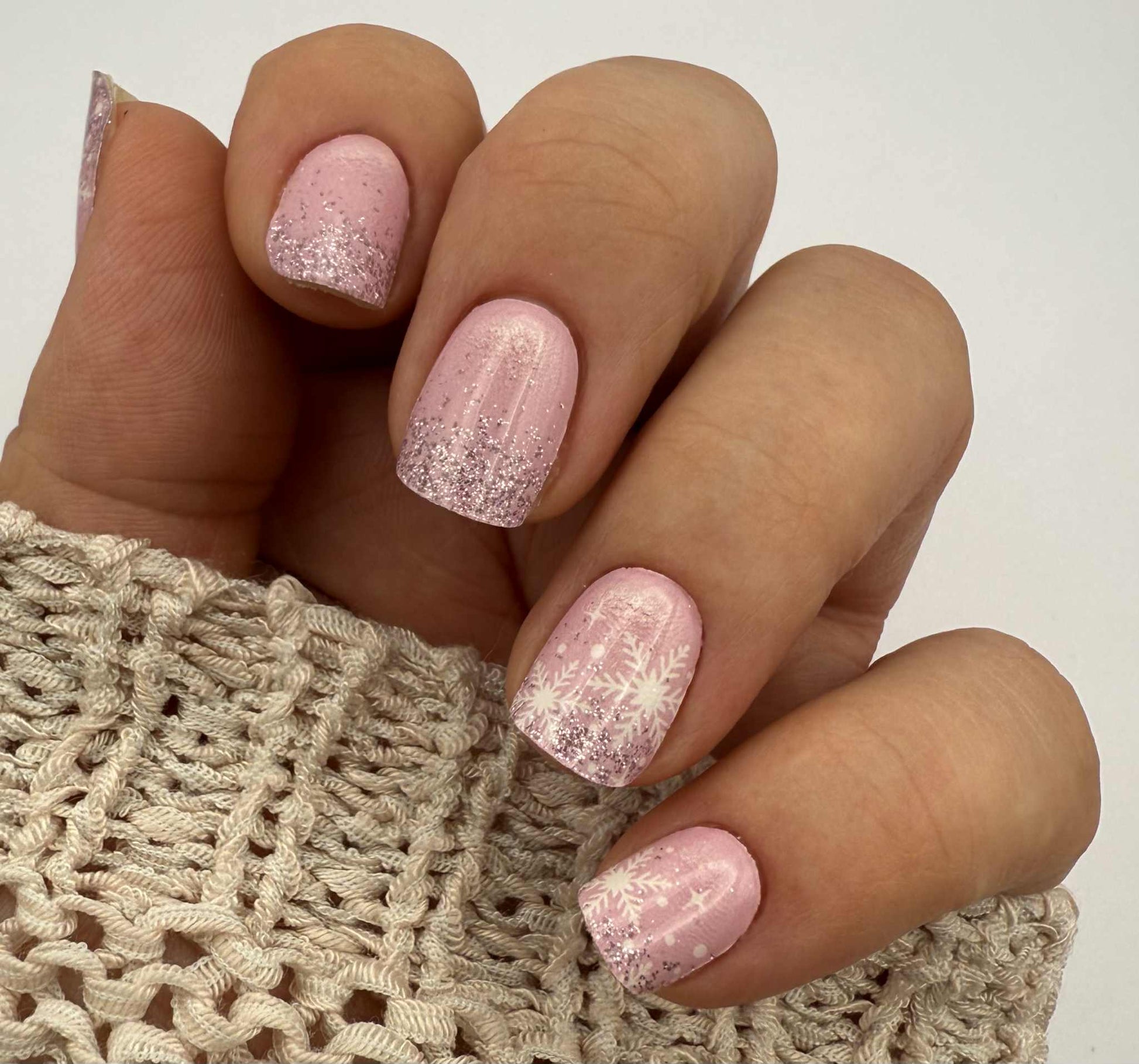 Rosafarbene Folie mit pinkem French-Glitzer und Schneeflocken