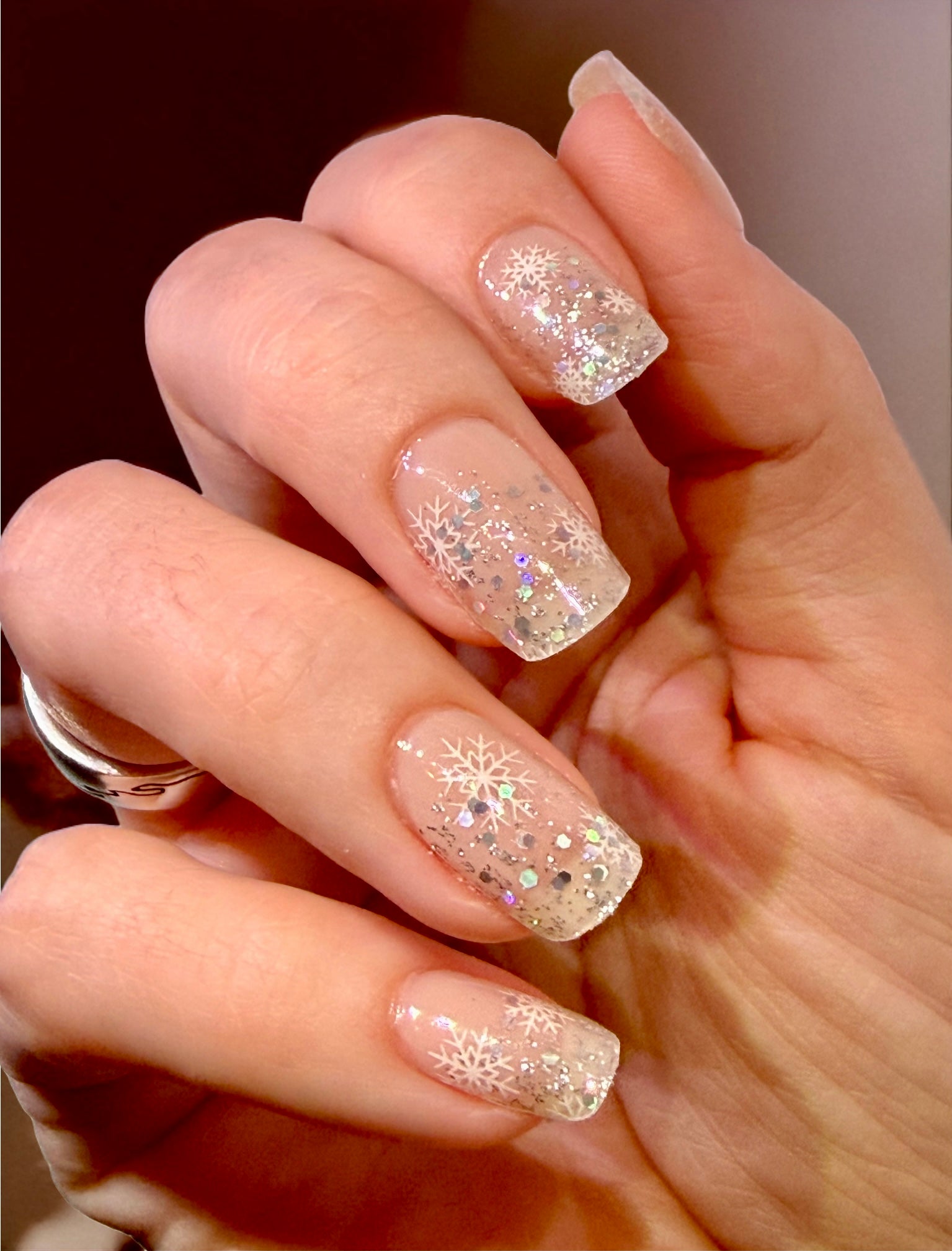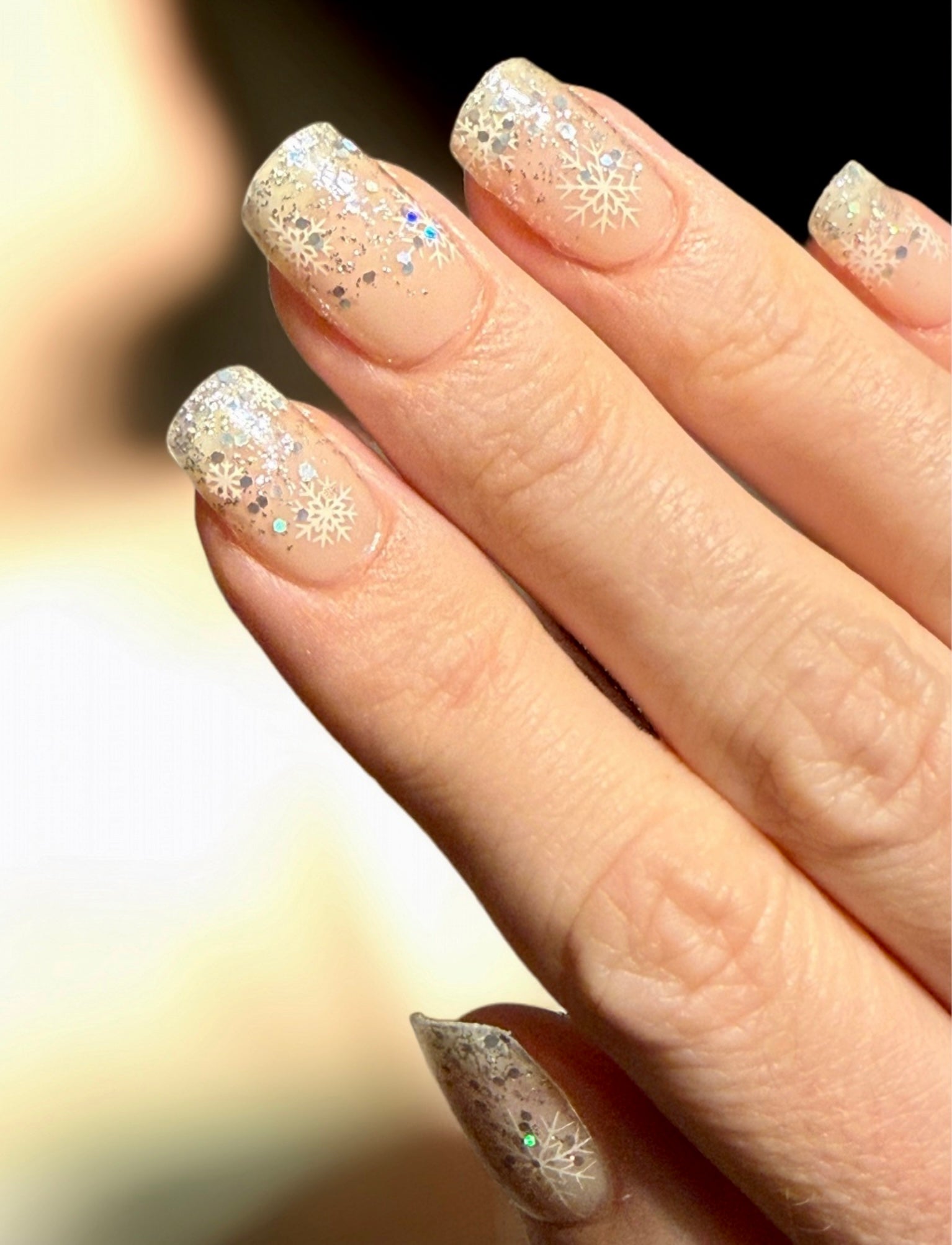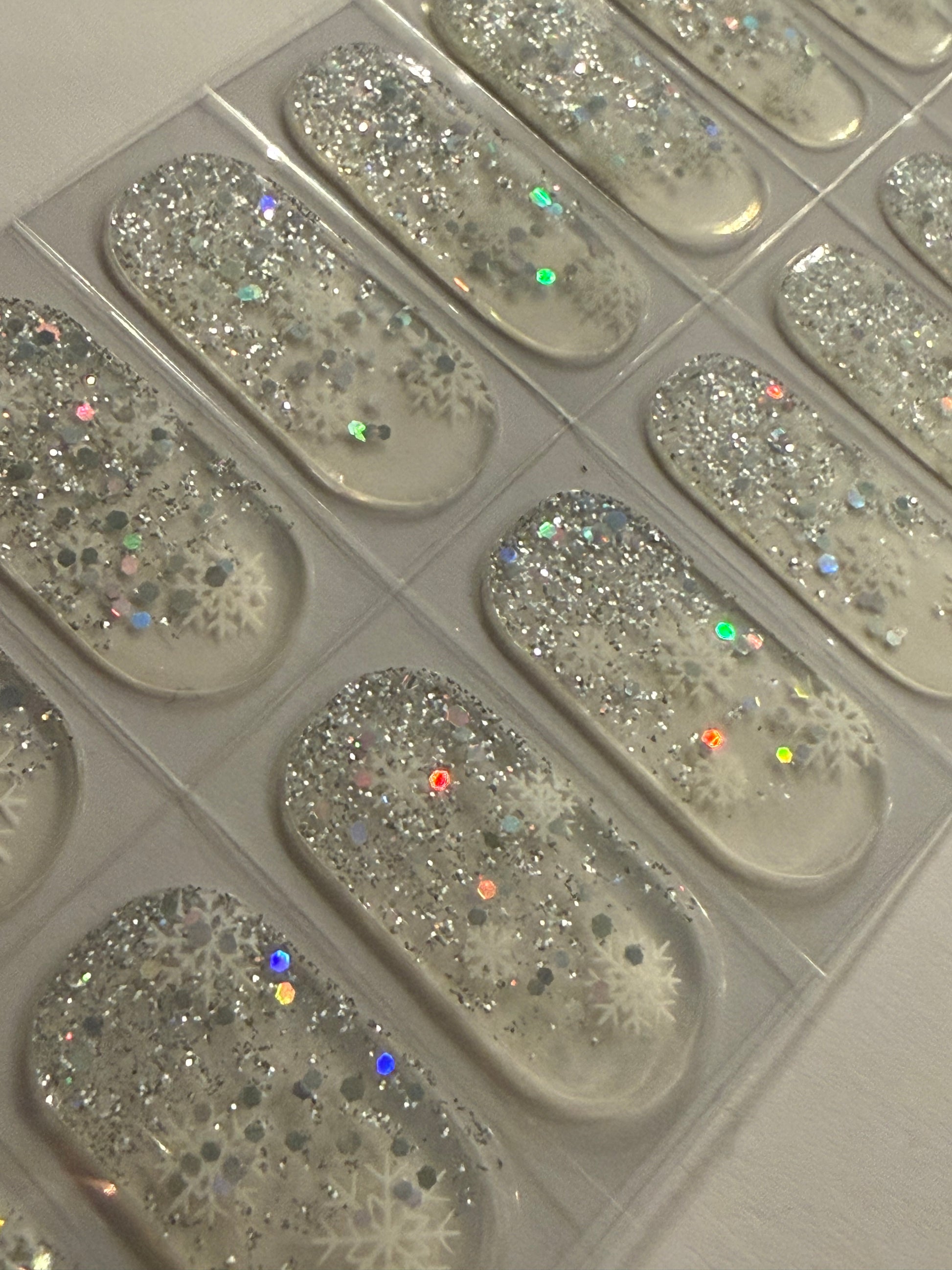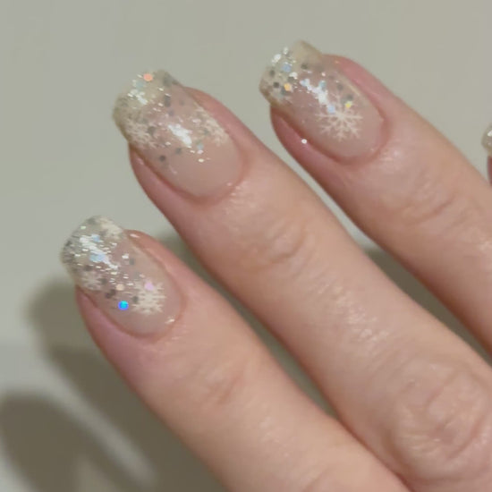 Teil-/Semitransparente Folie mit winterlichem Glitzer und Schneeflocken